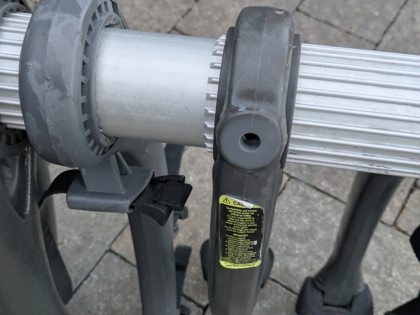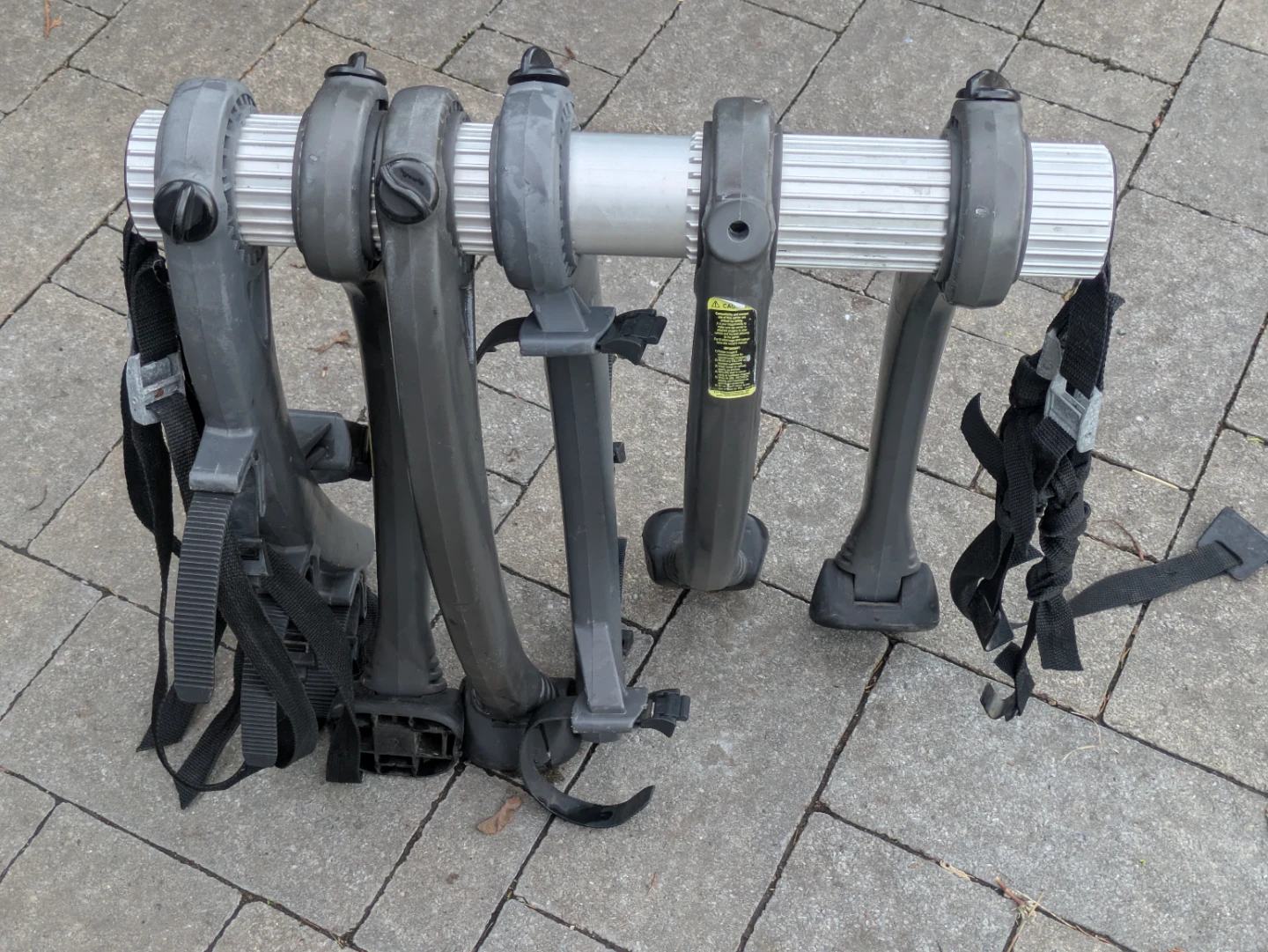 Good conditon Saris 3 bike rack. Missing one knob and strap. The price reflects this. Does not impact functionality.
