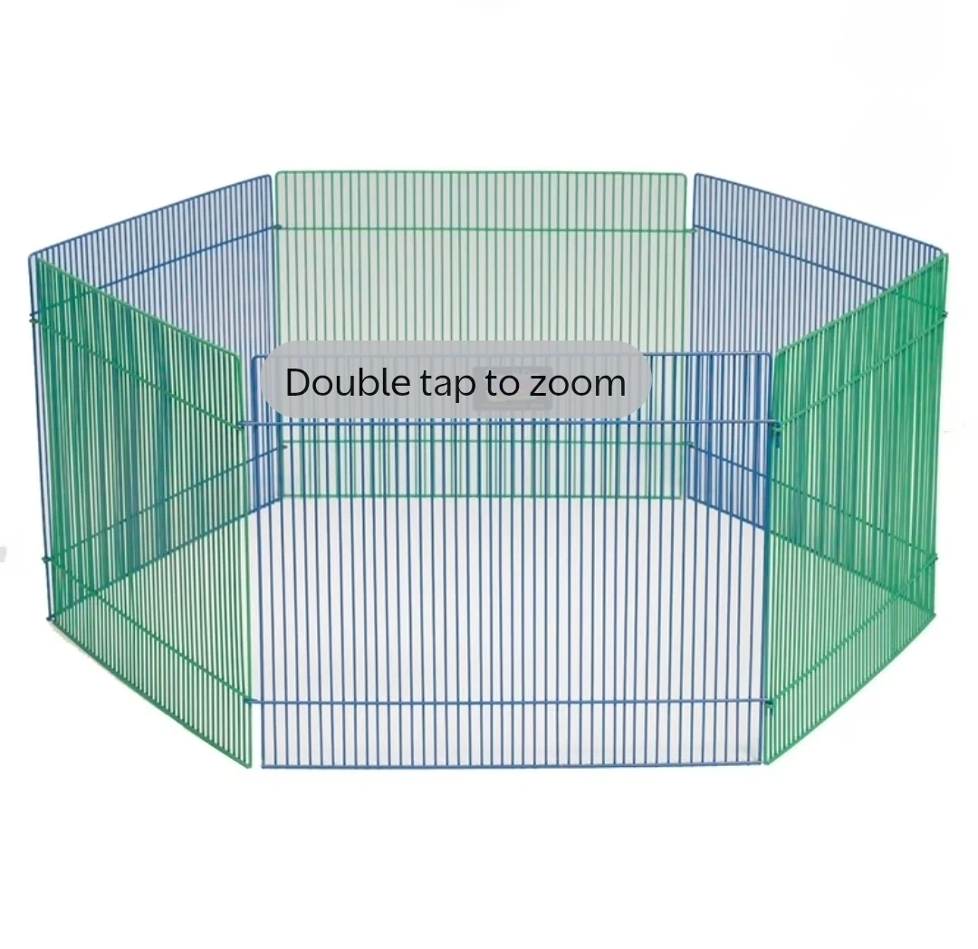 This is a Critterville small pet playpen with 6 connected panels. Each panel measures 18" W x 15" H. It provides 9.5 square feet of play space. It's ideal for hamsters, gerbils, and guinea pigs!