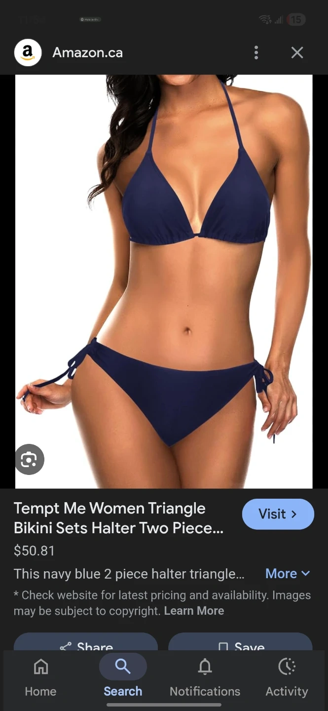Selling a navy blue two-piece halter triangle bikini set from Tempt Me. It's in great condition and ready for summer!