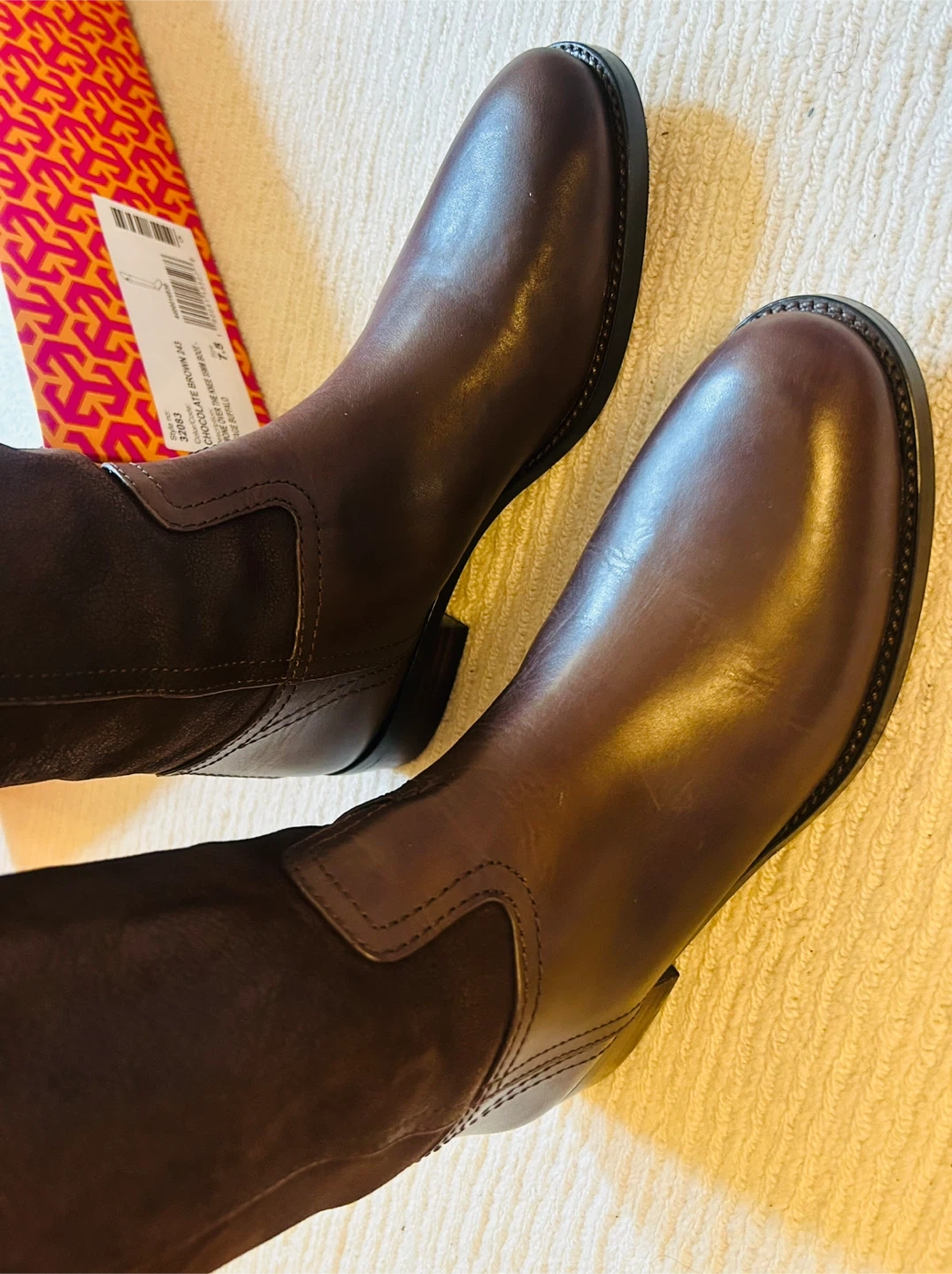 Brand New (in Original TB packages) Tory Burch 35MM over the knee Simone riding boots in Vintage Buffalo.