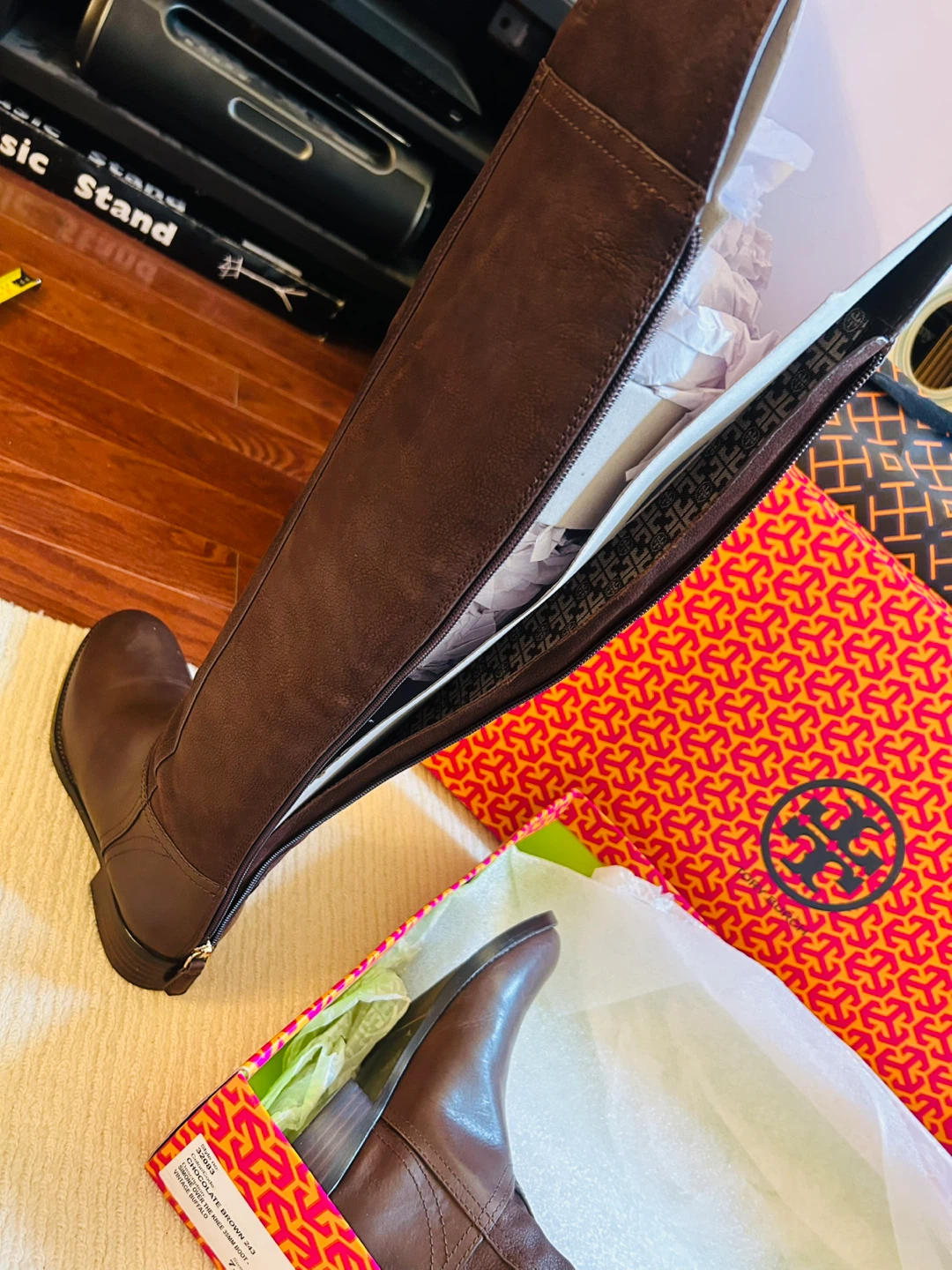 Brand New (in Original TB packages) Tory Burch 35MM over the knee Simone riding boots in Vintage Buffalo.