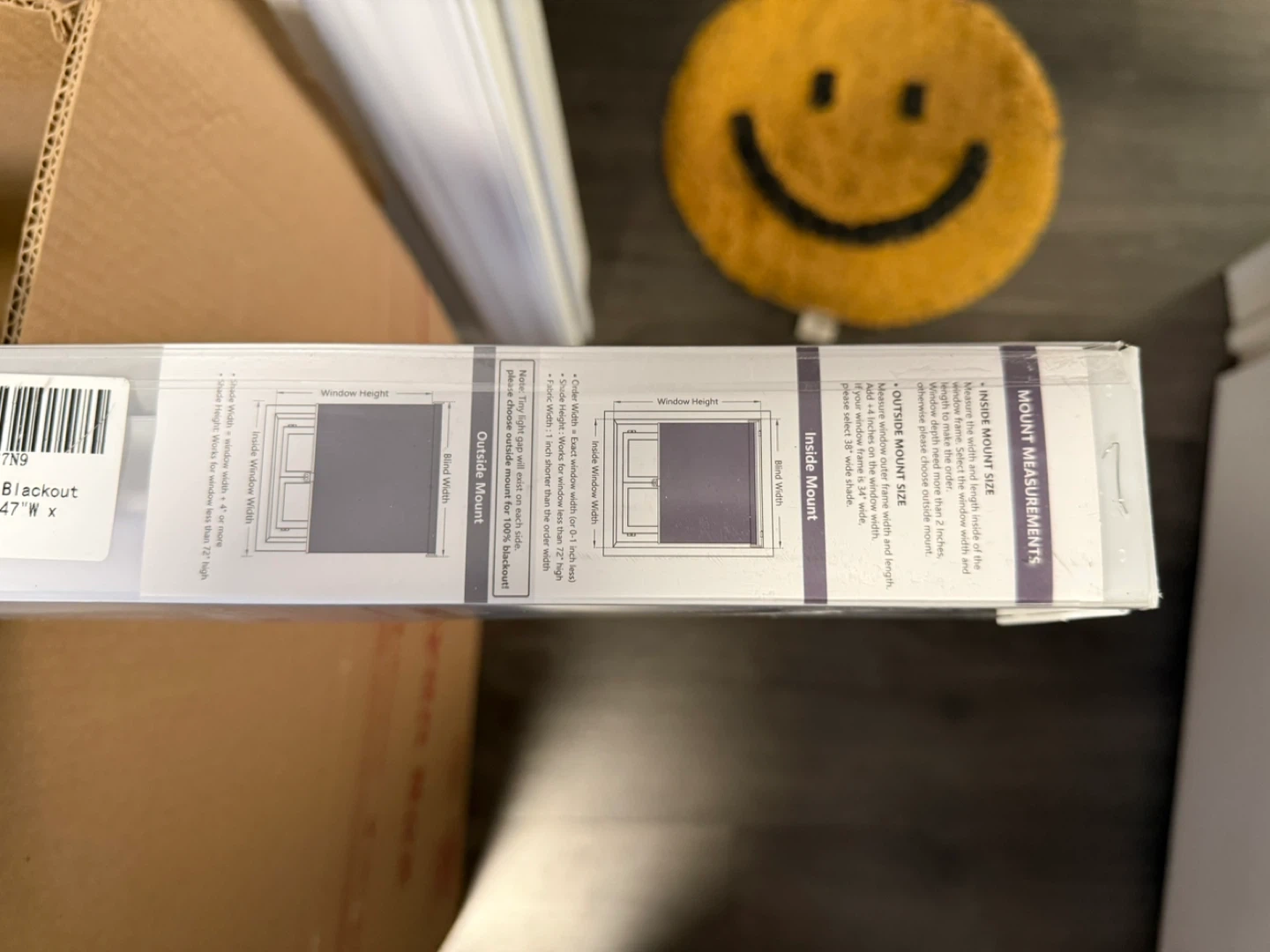 This is an AOSKY cordless roller blind. It's 47 inches wide by 72 inches high and comes in a grey colour. It's a blackout shade for light control. Useful for bedrooms or living spaces needing darkness!