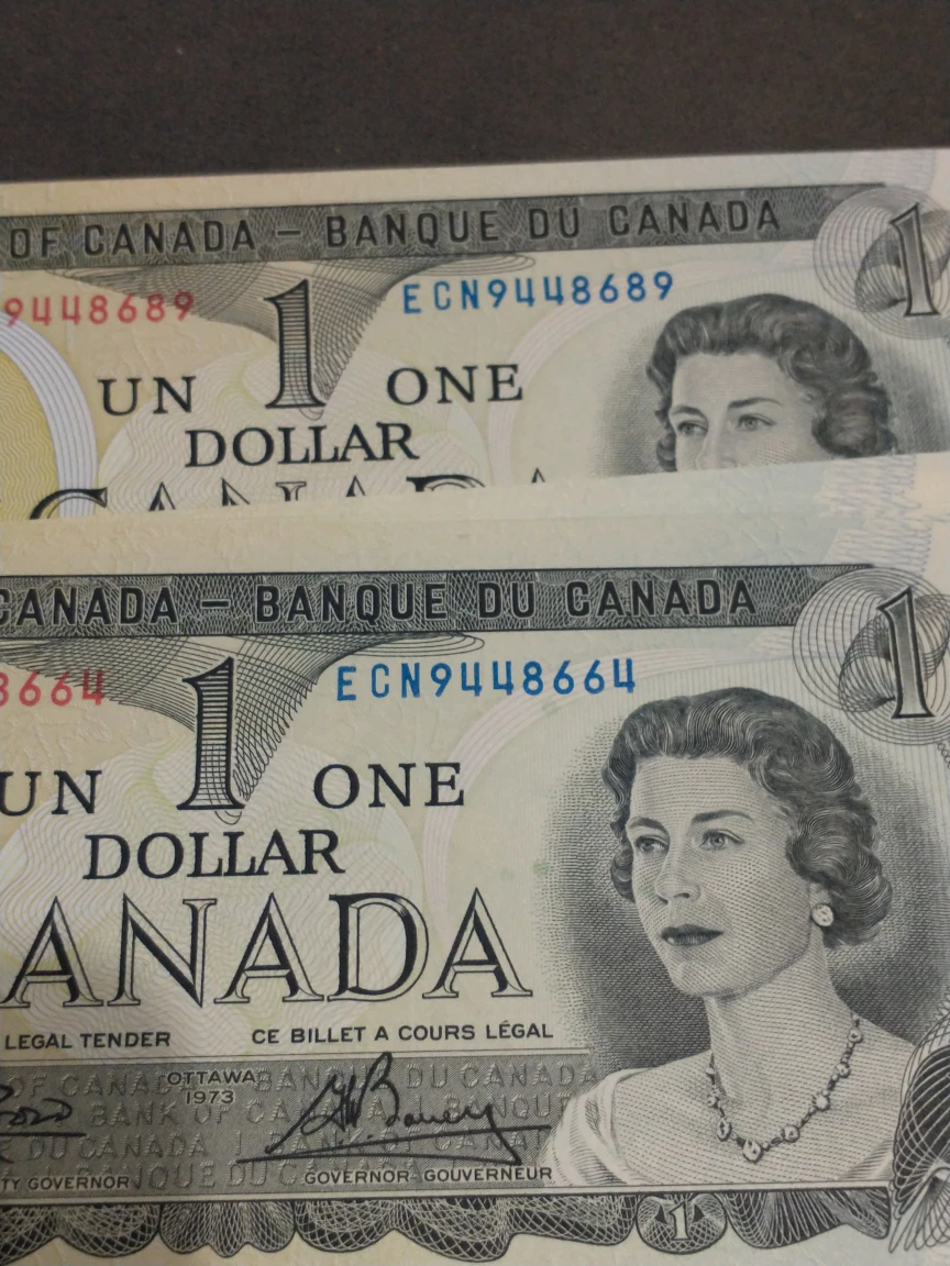 1973 Canada 26 consecutive uncirculated pristine banknotes, serial numbers ECN 944-8664 to ECN 944-8689, #2022-011 in box 14.
