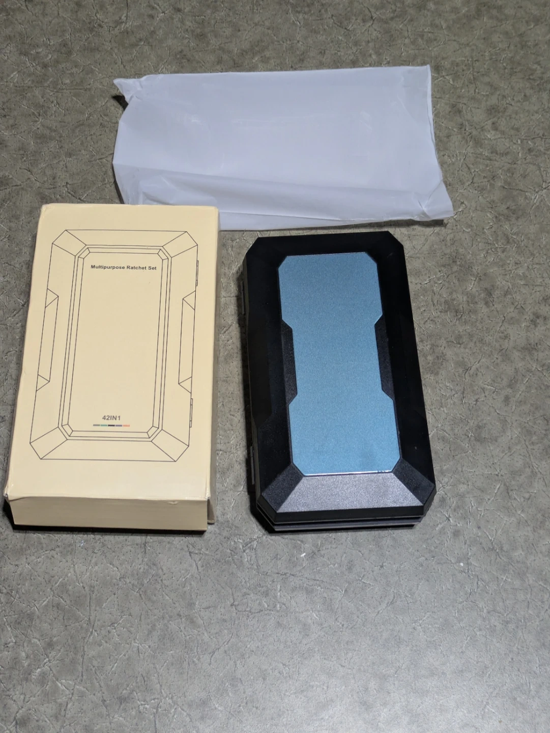 This is a 42-in-1 multipurpose ratchet set. It includes a variety of bits and a handle. Comes with a storage case. Useful for household repairs and DIY projects!