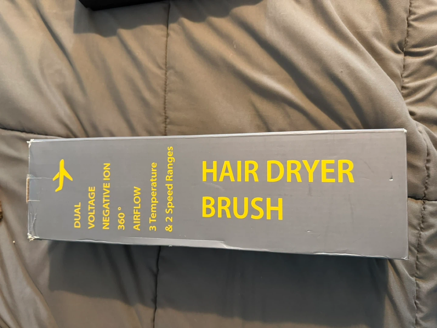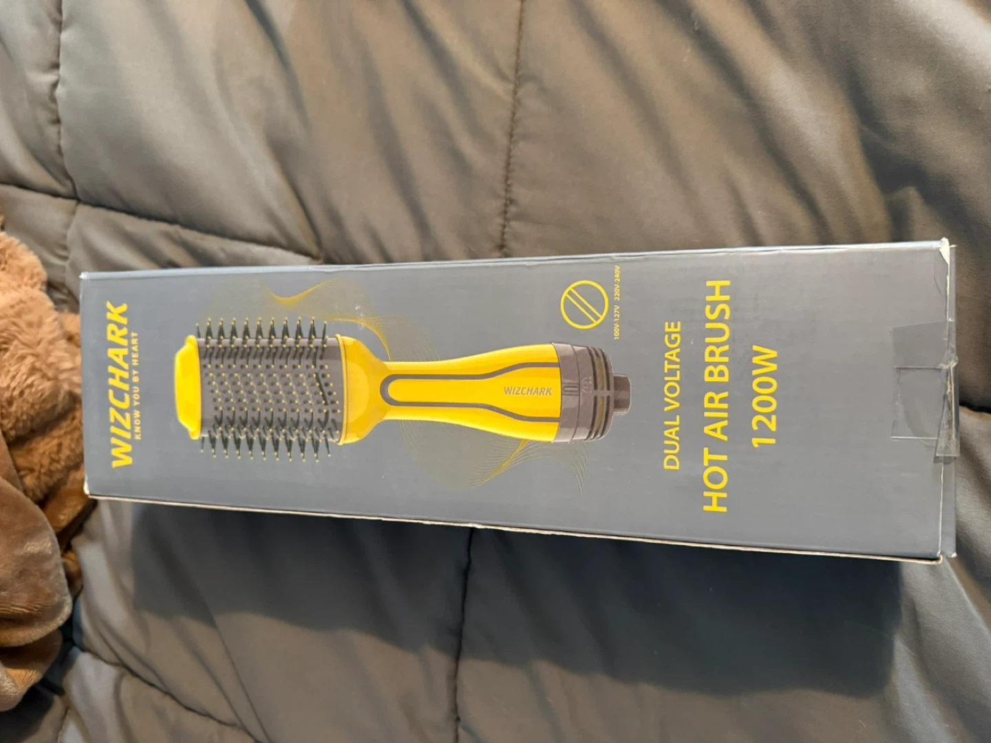 This is a WIZHARK hot air brush styler with 1200W of power. It features dual voltage, 360° airflow, 3 temperature settings, and 2 speed ranges. Great for styling, drying, and curling hair!