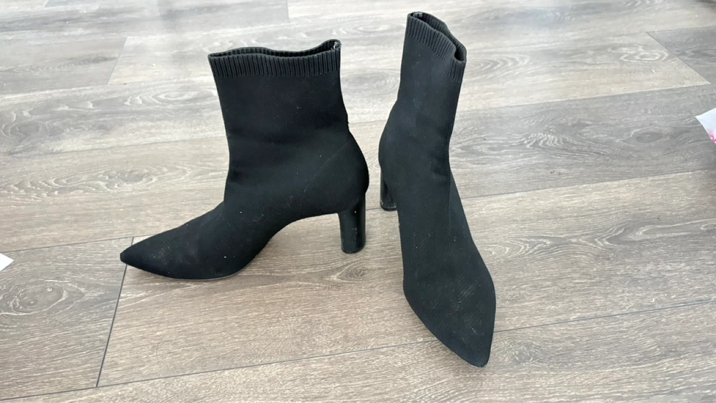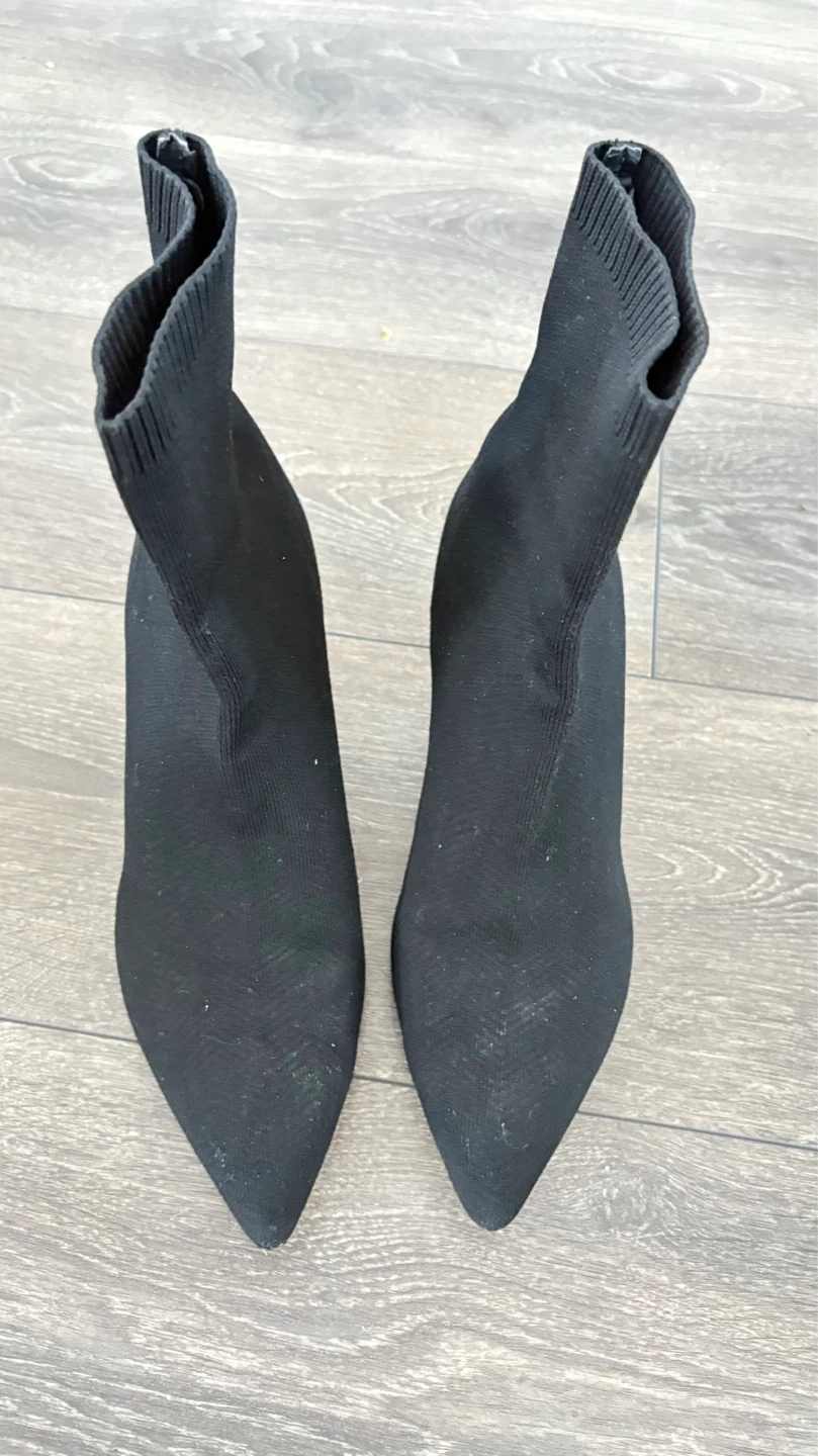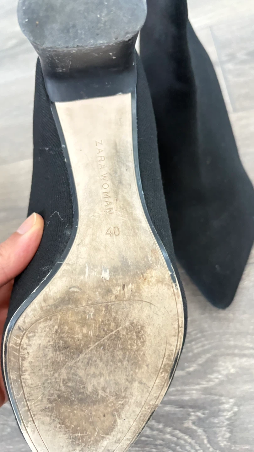 Buy & SellZara Woman Black Sock Boots - Size 40Zara Woman Black Sock Boots - Size 40$10Black sock boots from Zara Woman. Features a pointed toe and block heel. Size is EU 40. Material is stretchy knit.ConditionLike newSize40BrandZara WomanWHERE TO MEETCheck LocationView MapSELLERverifiedAdinaRegent Park81878 reviews0 chats·0 favorites·5 viewsSEND CHAT TO SELLERHi Adina! I’m interested in your listing.Hi Adina! I’m interested in your listing.Get the Karrot app to chatSign In to chat