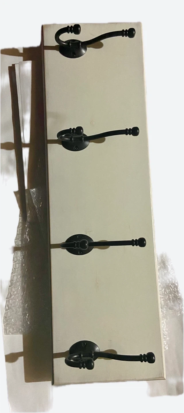 Light Cream Coat Rack with 4 Black Hooks