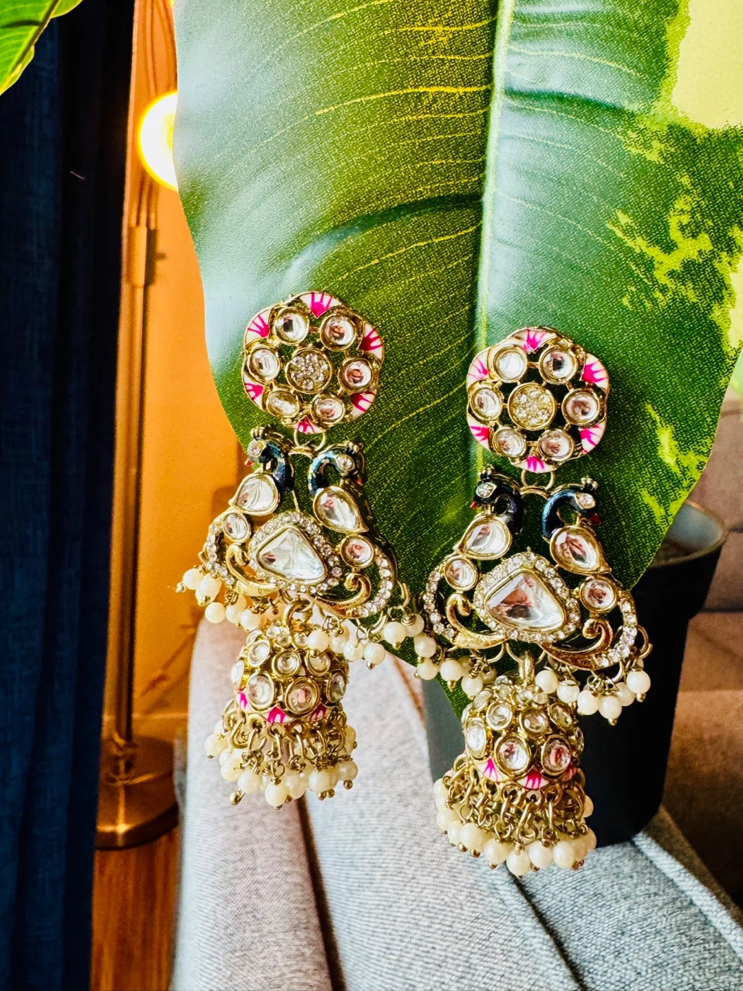 "Peacock Charm Kundan Jhumkas 🦚"