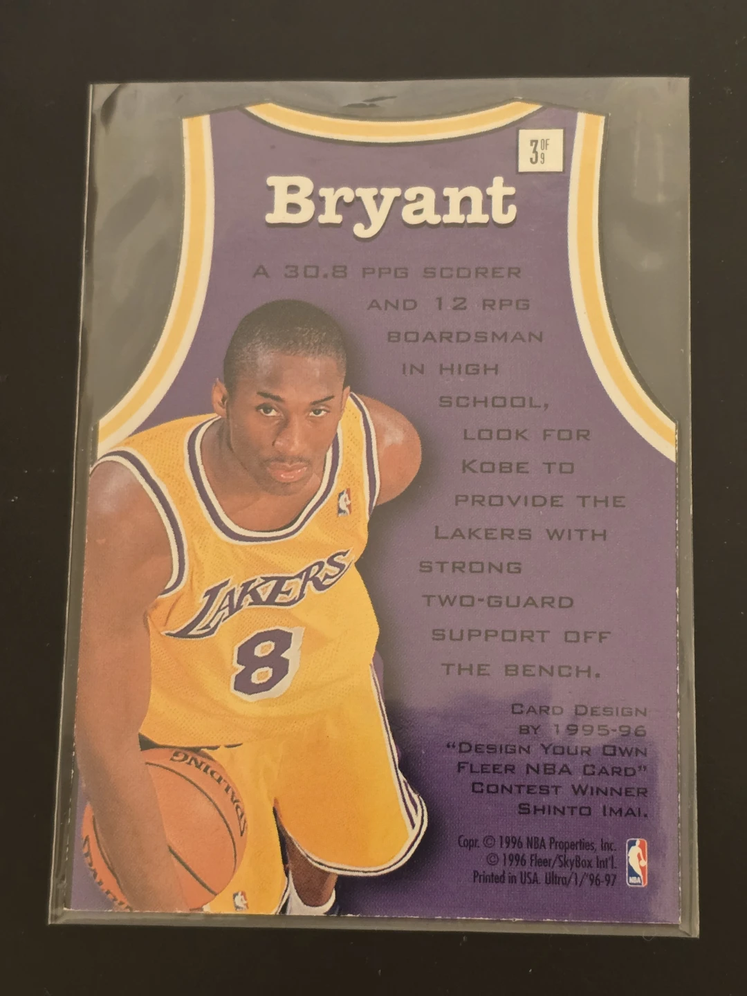 1996 Fleer "Kobe Bryant" Fresh Faces Die-Cut #3 Rookie Basketball Card in perfect condition.
