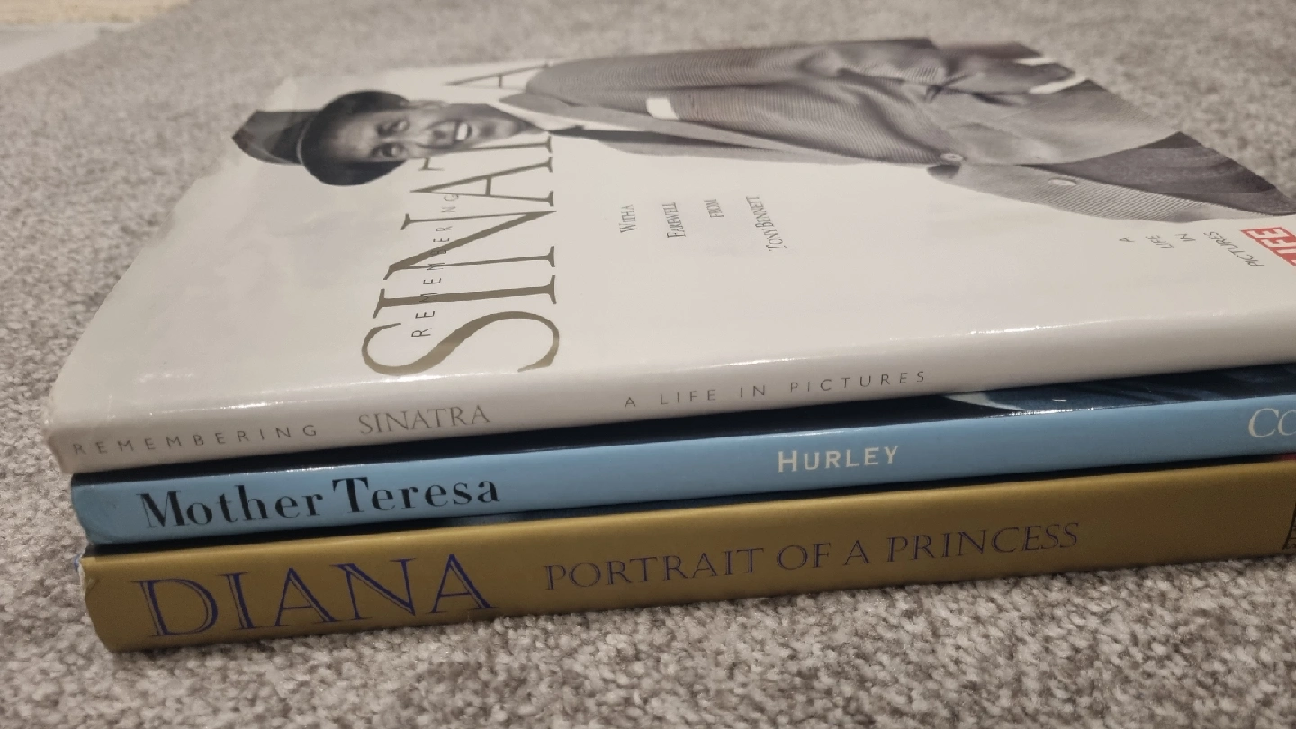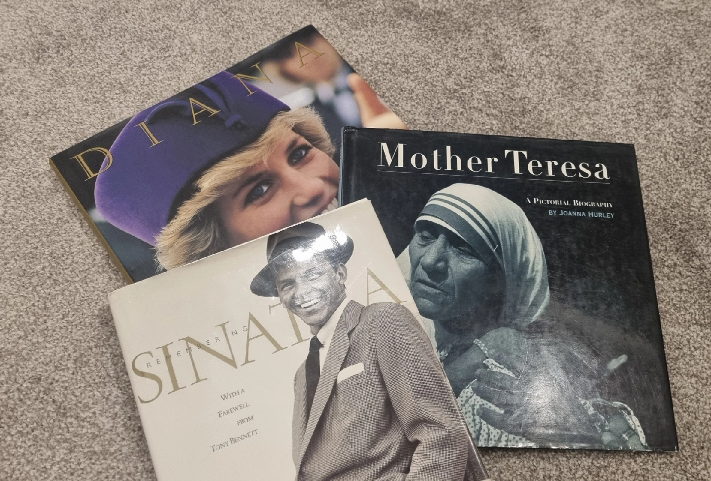 Selling three books: Diana: Portrait of a Princess by Jayne Fincher, Mother Teresa: A Pictorial Biography by Joanna Hurley, and Remembering Sinatra: A Life in Pictures with a Farewell from Tony Bennett