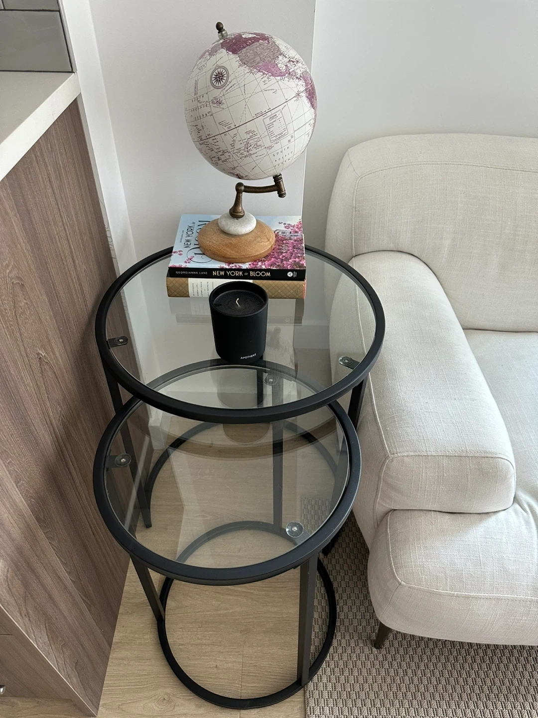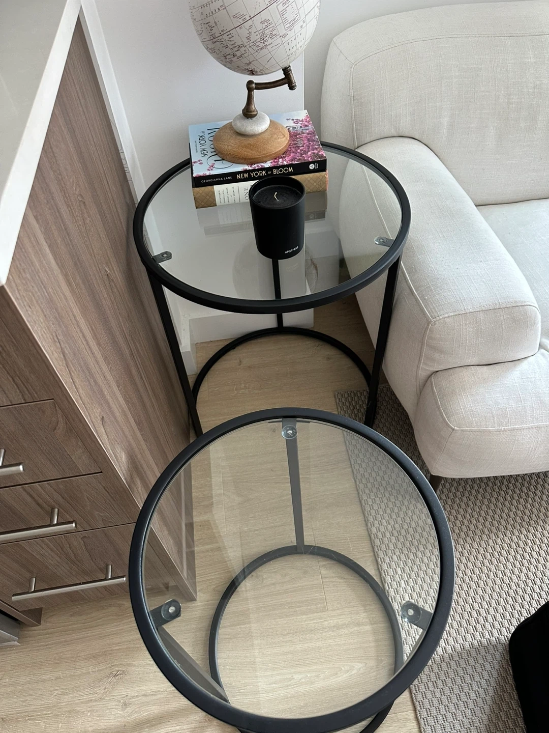 Buy & SellNesting Round Glass Top Side Tables Set of 2Nesting Round Glass Top Side Tables Set of 2$47Set of two nesting side tables. Features round glass tops with black metal frames. Perfect for small spaces!ConditionLike newWHERE TO MEETCheck LocationView MapSELLERverifiedGregDowntown Brooklyn1065 reviews2 chats·0 favorites·61 viewsSEND CHAT TO SELLERHi Greg! I’m interested in your listing.Hi Greg! I’m interested in your listing.Get the Karrot app to chatSign In to chat