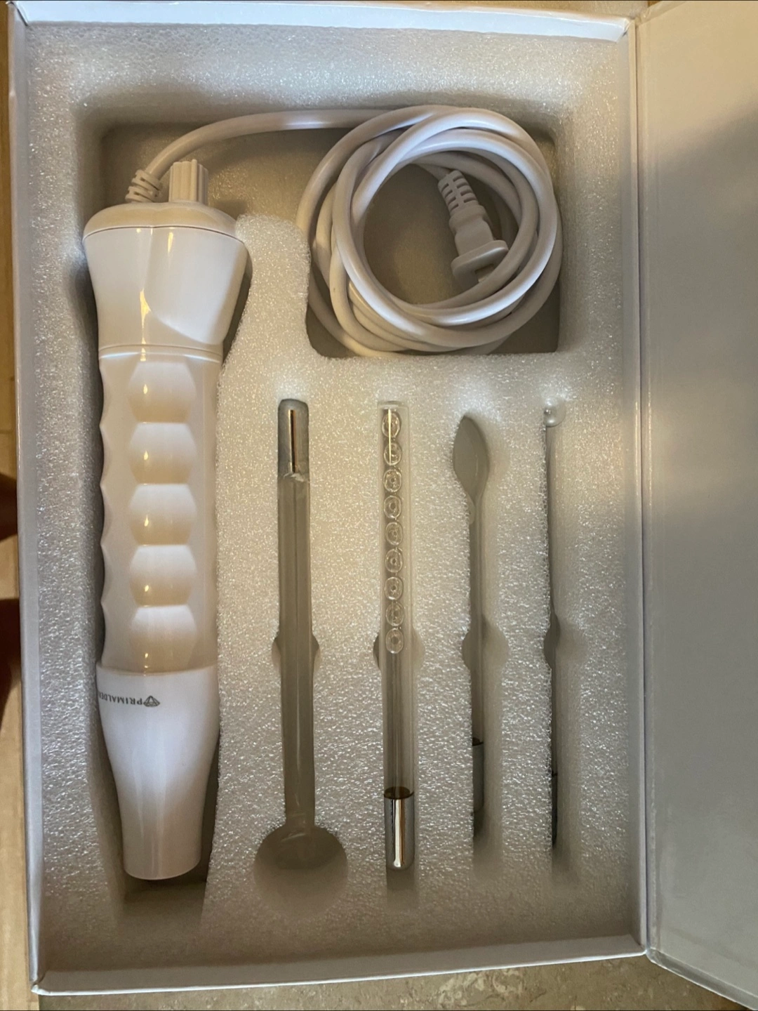 Selling a Primalderm High Frequency Therapy Kit in great condition! This kit is designed to treat acne, prevent breakouts, soften fine lines and wrinkles, and nourish follicles for fuller hair. Comes with all the attachments and the original box. The big attachment is a lil damaged but works just as fine.