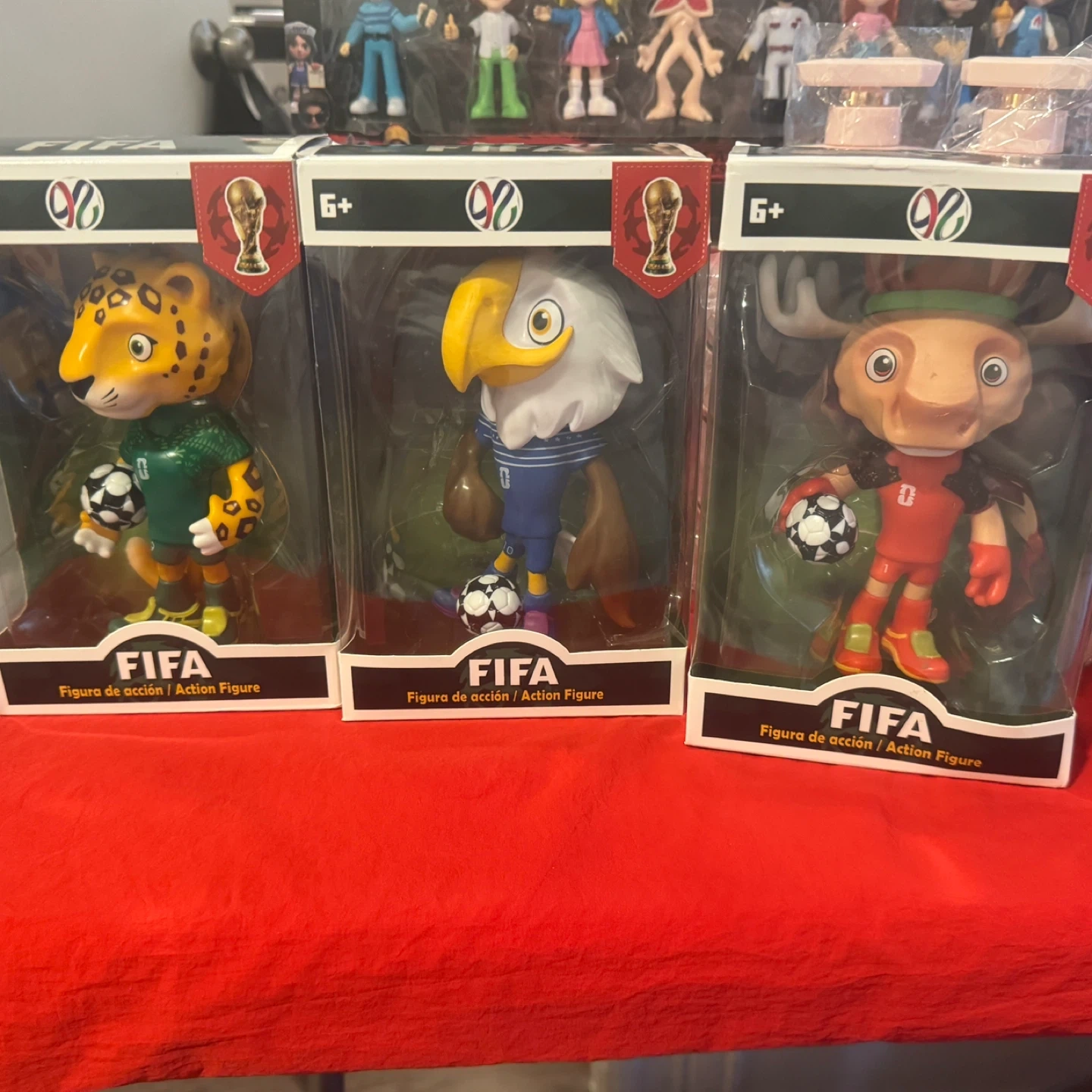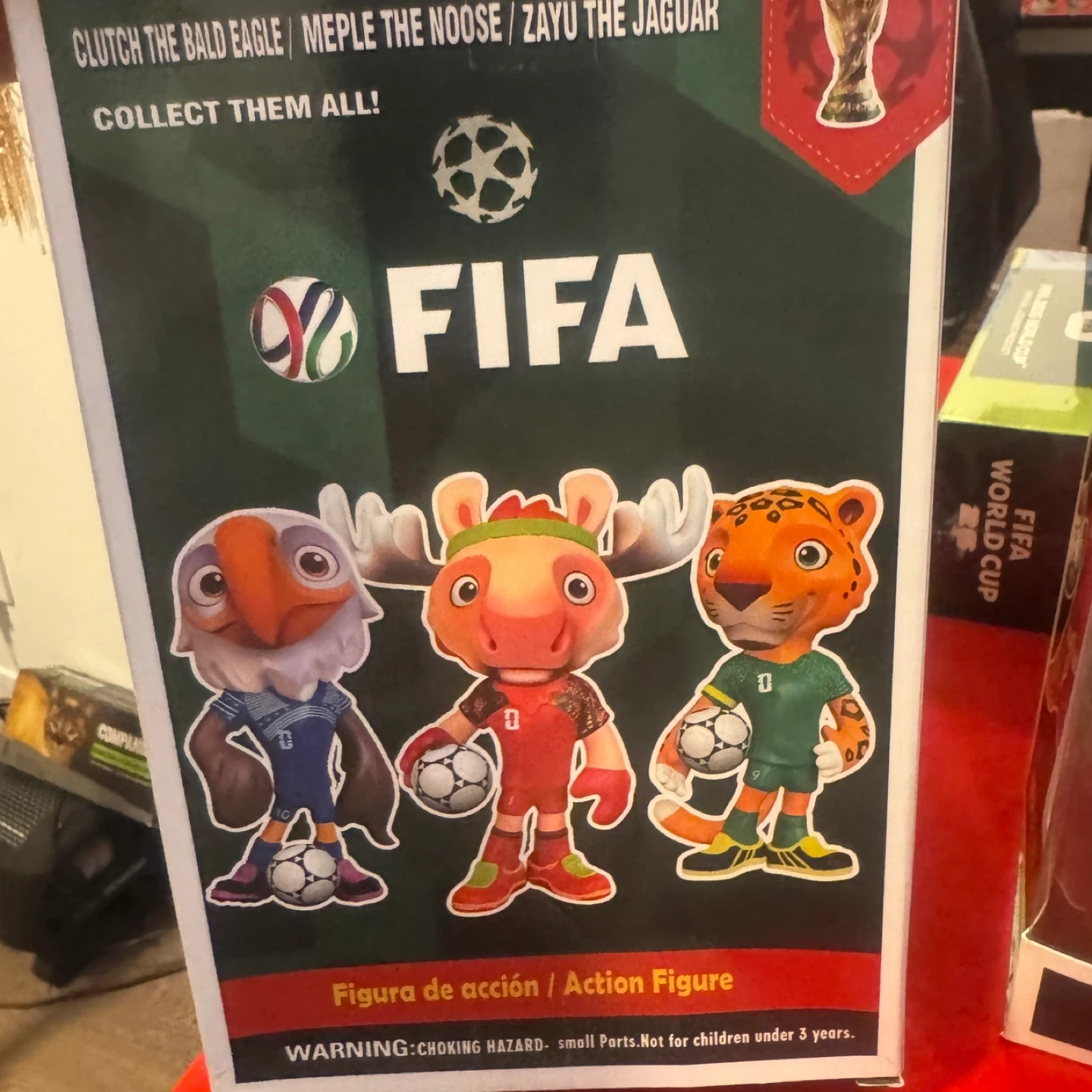 Collect all three FIFA action figures: Clutch the Bald Eagle, Meple the Moose, and Zayu the Jaguar. Each figure is designed for ages 6 and up. These collectible figures are great for any FIFA fan! $10 each