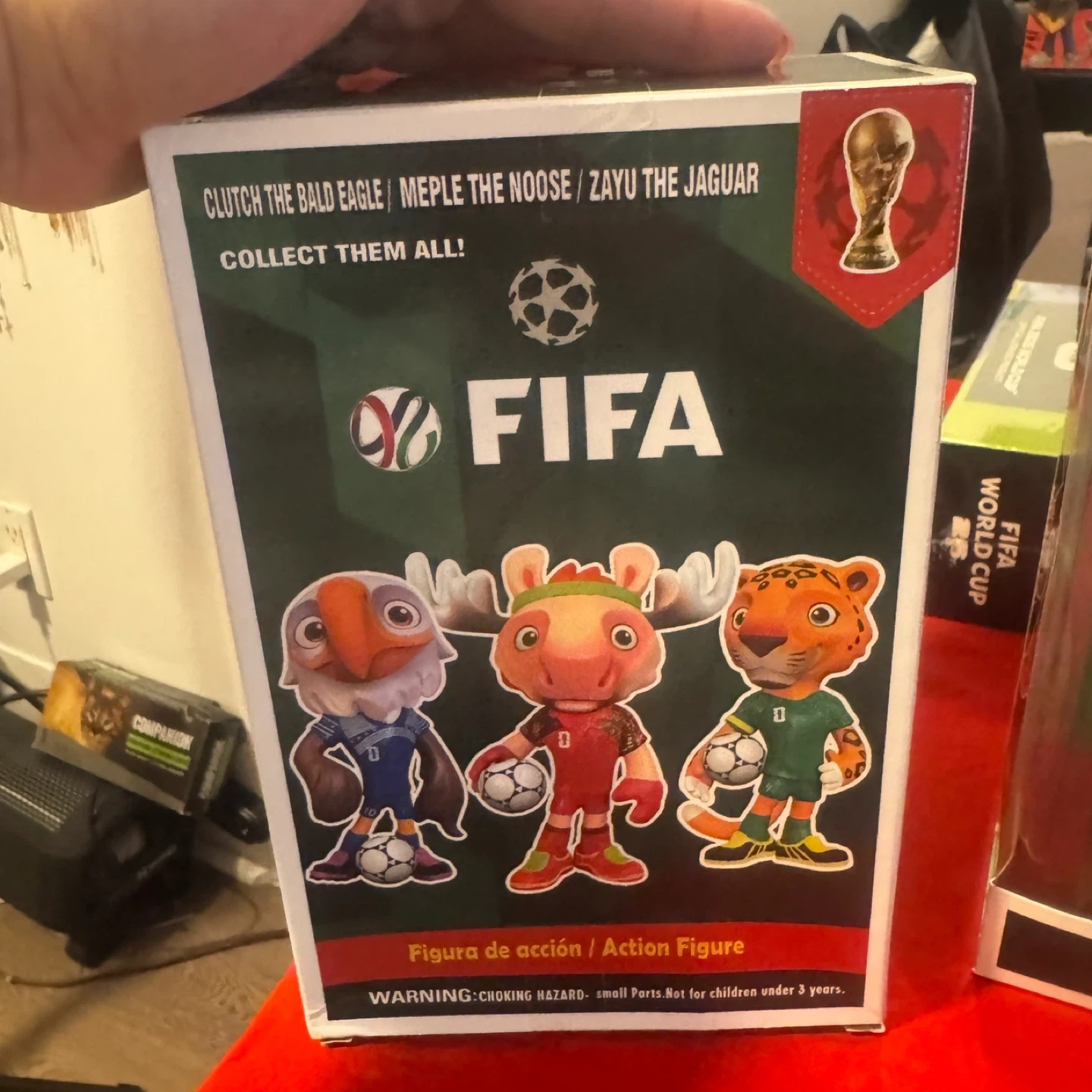 Collect all three FIFA action figures: Clutch the Bald Eagle, Meple the Moose, and Zayu the Jaguar. Each figure is designed for ages 6 and up. These collectible figures are great for any FIFA fan! $10 each