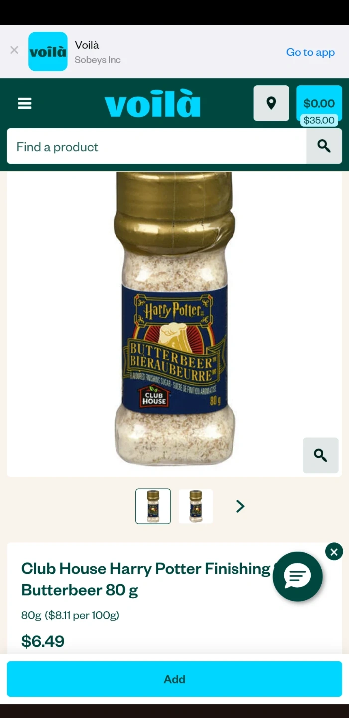Buy & Sell$4 firm (reg. $6.50) Harry Potter Butterbeer Finishing Sugar 80g$4 firm (reg. $6.50) Harry Potter Butterbeer Finishing Sugar 80g$4Toronto downtown 80 vanauley street or college station ConditionNewWHERE TO MEETCheck LocationView MapSELLERverifiedKimAlexandra Park30429 reviews0 chats·0 favorites·18 viewsSEND CHAT TO SELLERHi Kim! I’m interested in your listing.Hi Kim! I’m interested in your listing.Get the Karrot app to chatSign In to chat