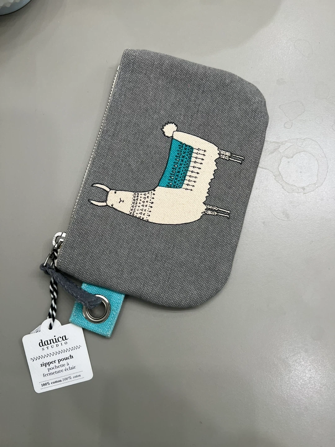 Super cute Danica Studio zipper pouch with a fun llama design! It's made of 100% cotton and is perfect for keeping your essentials organized. Great for small items!