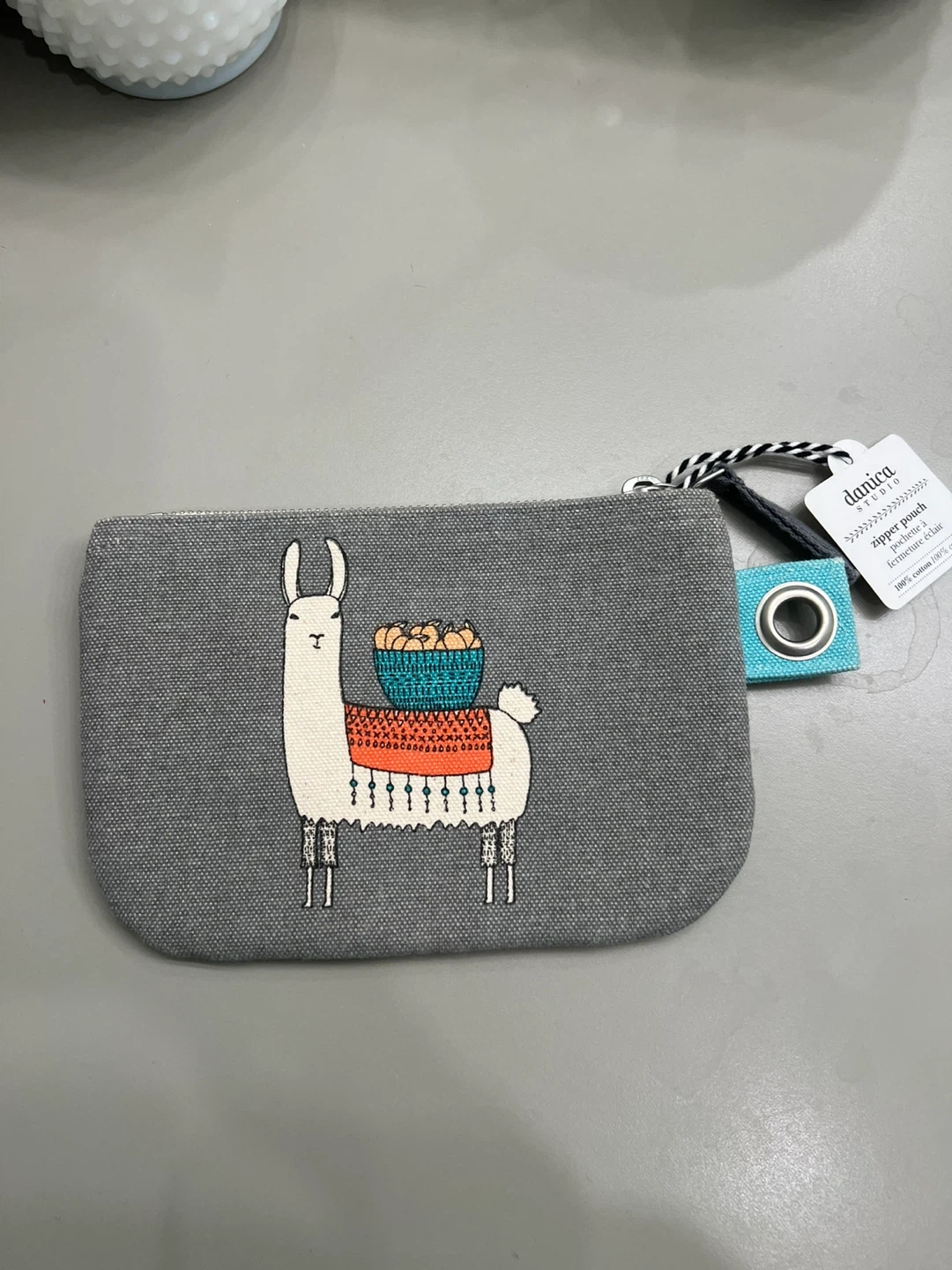 Super cute Danica Studio zipper pouch with a fun llama design! It's made of 100% cotton and is perfect for keeping your essentials organized. Great for small items!