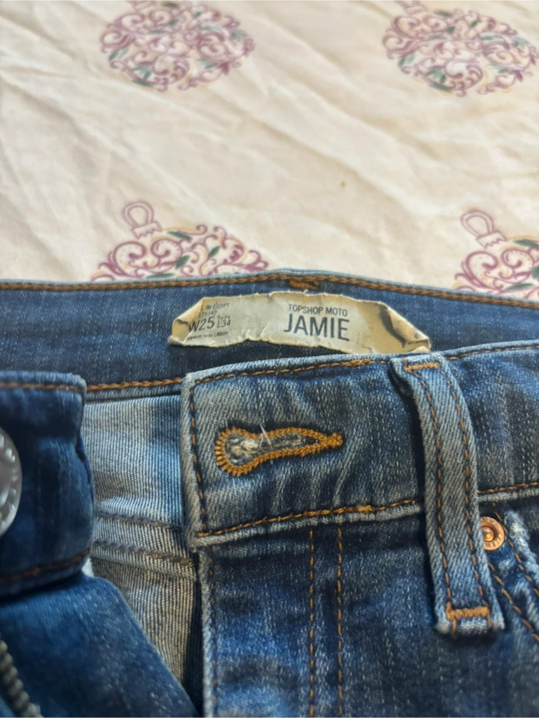 Topshop Moto Jamie jeans in size W25. These jeans feature a stylish design with a comfortable fit, perfect for everyday wear