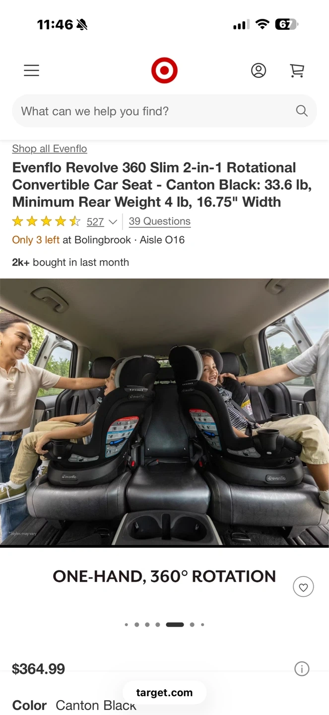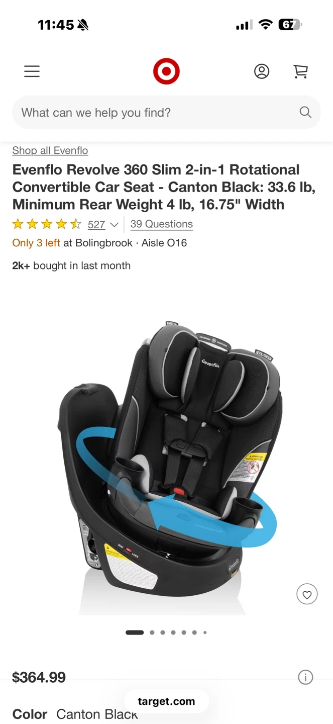 Got a compact vehicle and a little one on the way? Check out the Evenflo® Revolve360™ Slim 2-in-1 Rotational Car Seat! We slimmed the exterior of our revolutionary car seat to create a 16.7” footprint without sacrificing your child’s seating space or safety. You can fit more of what you love into your backseat with more room for passengers and your growing family! A spin-off of the Revolve360, America’s bestselling rotational car seat, the Revolve360 Slim offers one-hand, 360° rotation in all modes, making it easier to get your child in and out of the car.