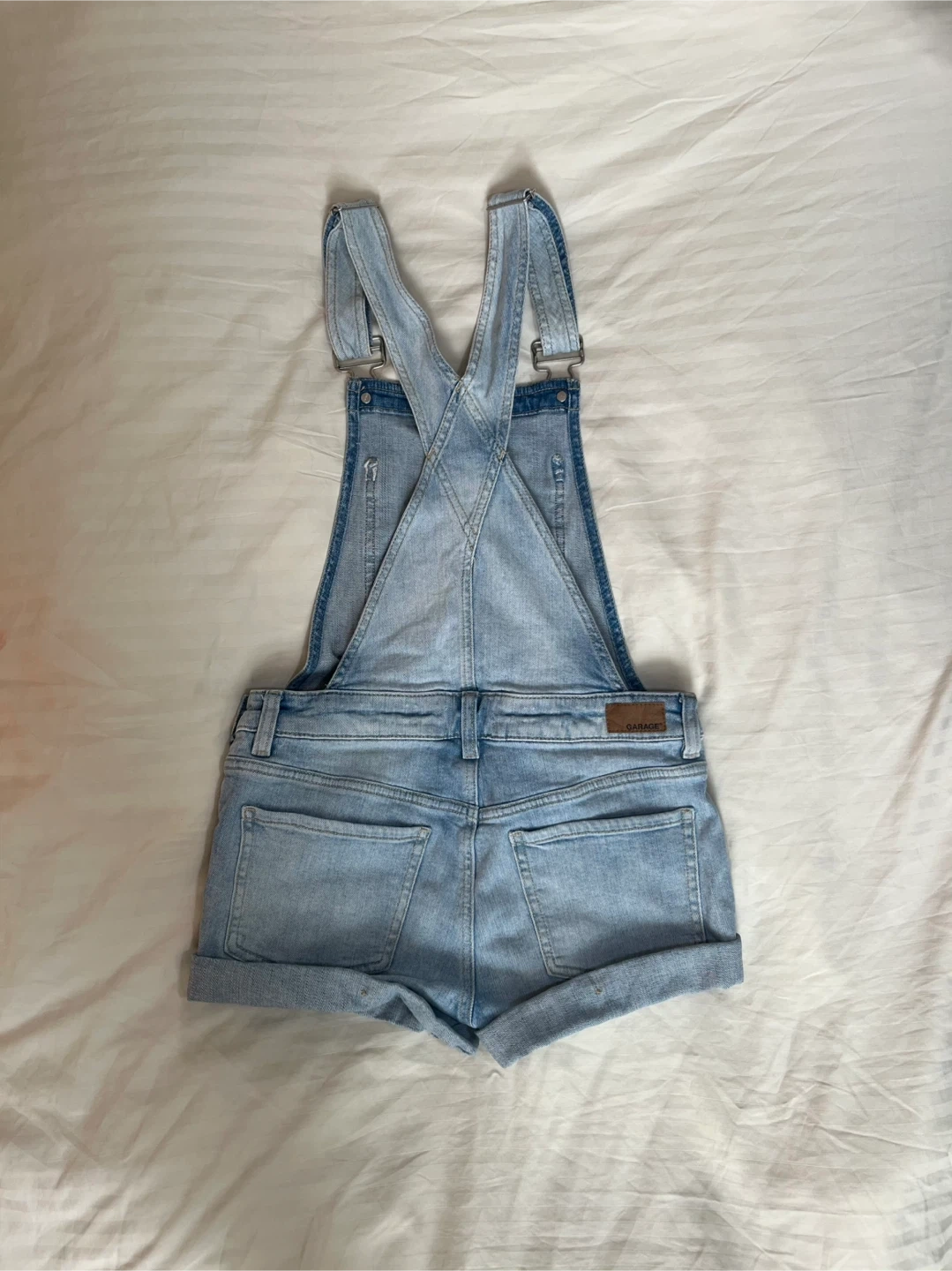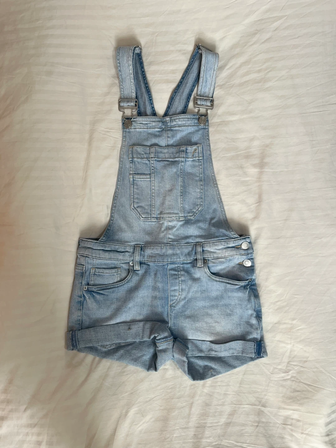 Chic denim overalls with adjustable straps. Features pockets both in the front and back, including a large front pocket.