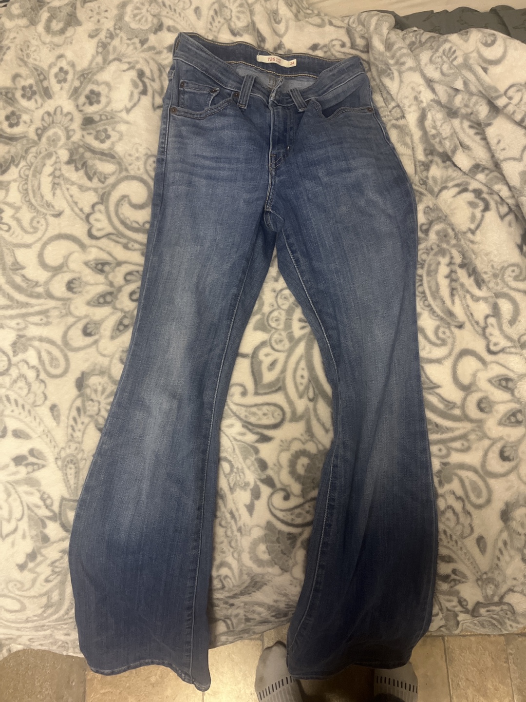 Selling a pair of Levi's 726 Flare jeans in size 24. They're in good condition and have the classic Levi's look and feel. Perfect for adding a bit of retro style to your wardrobe!