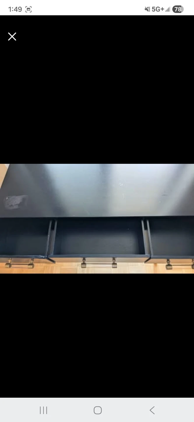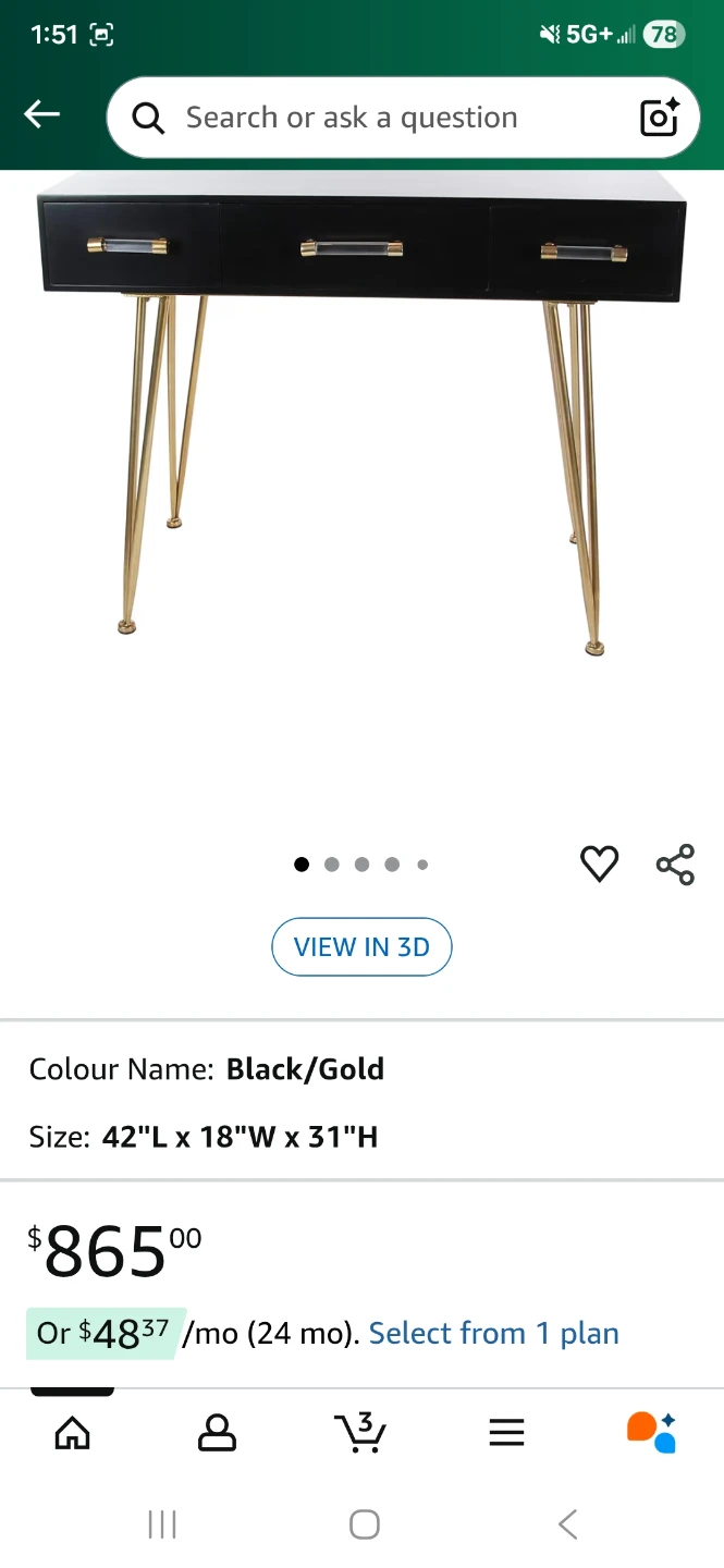 Selling a Deco 79 console table in black and gold! It features a three-drawer design with iron and pine wood construction.