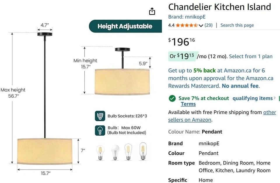 - Ideal for kitchen island or dining area