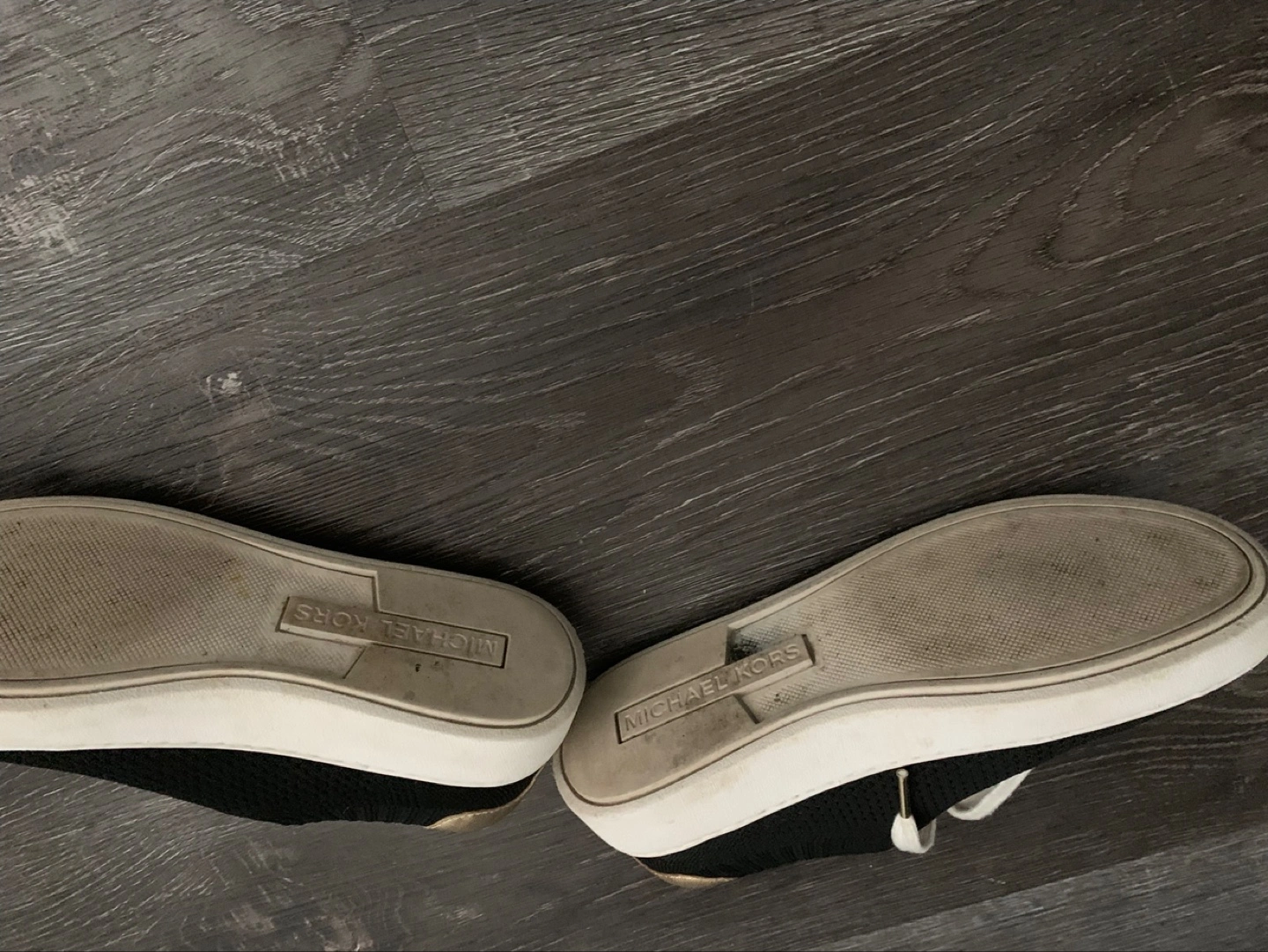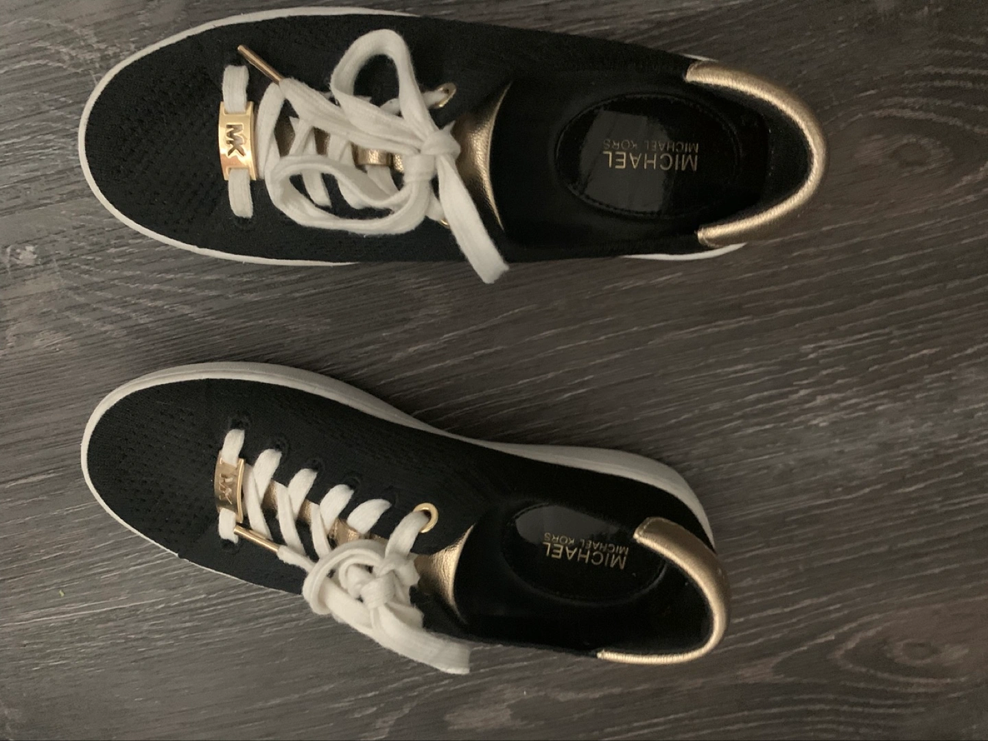 Women's Michael Kors sneakers. Size 5.5. Black with gold accents. White laces.