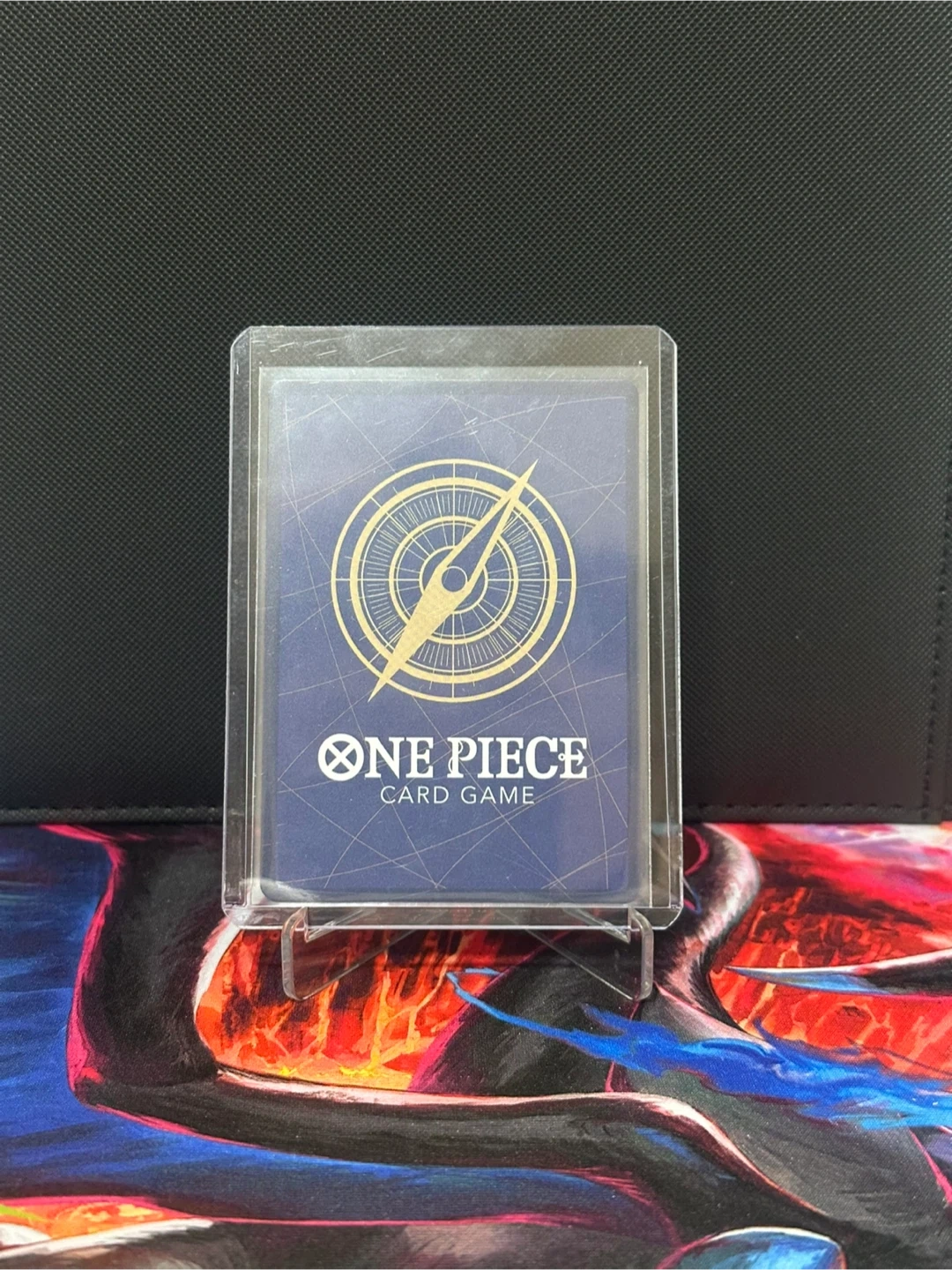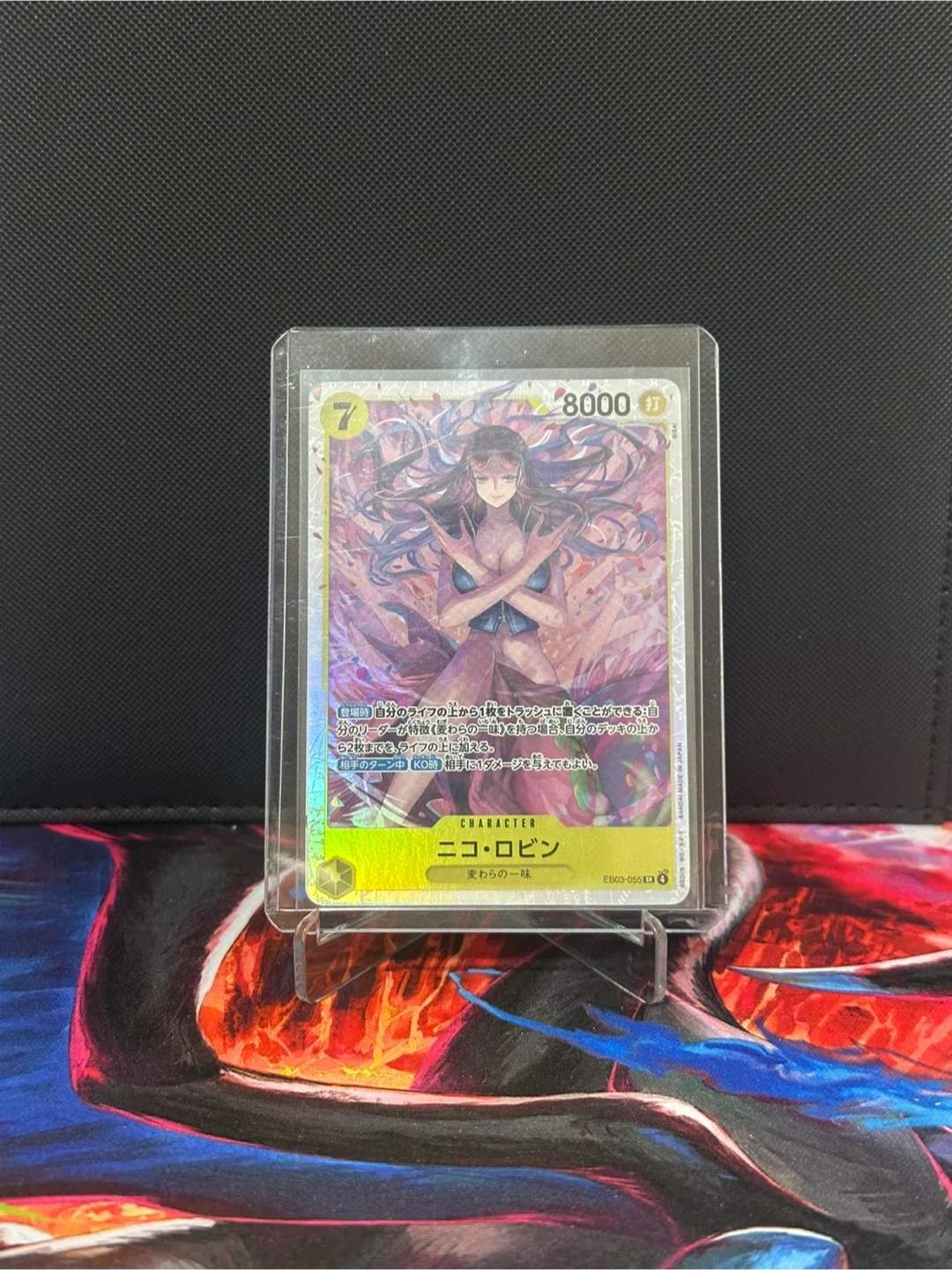 This is a Nico Robin character card for the One Piece Card Game. It is in a protective sleeve.