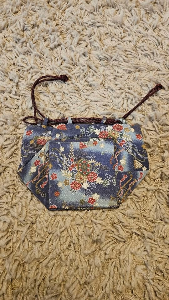 Blue Floral Drawstring Rice Pouch