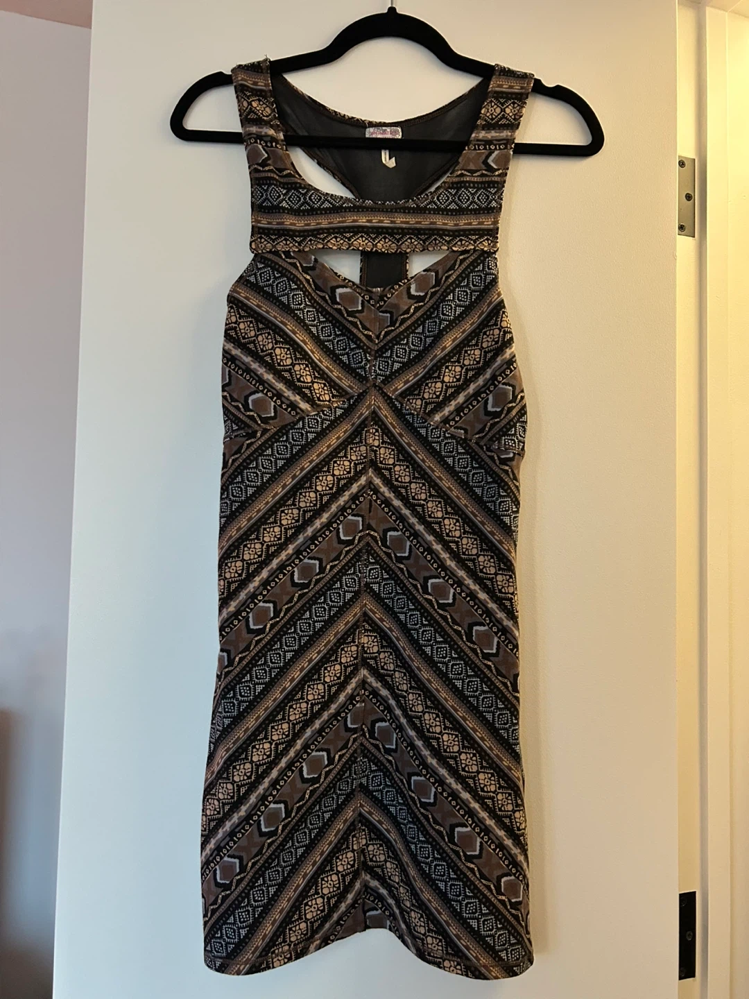This Free People mini dress is in great condition and ready for a new home! It's a size s with a unique pattern and design. The original price tag shows $128, so you're getting a great deal!
