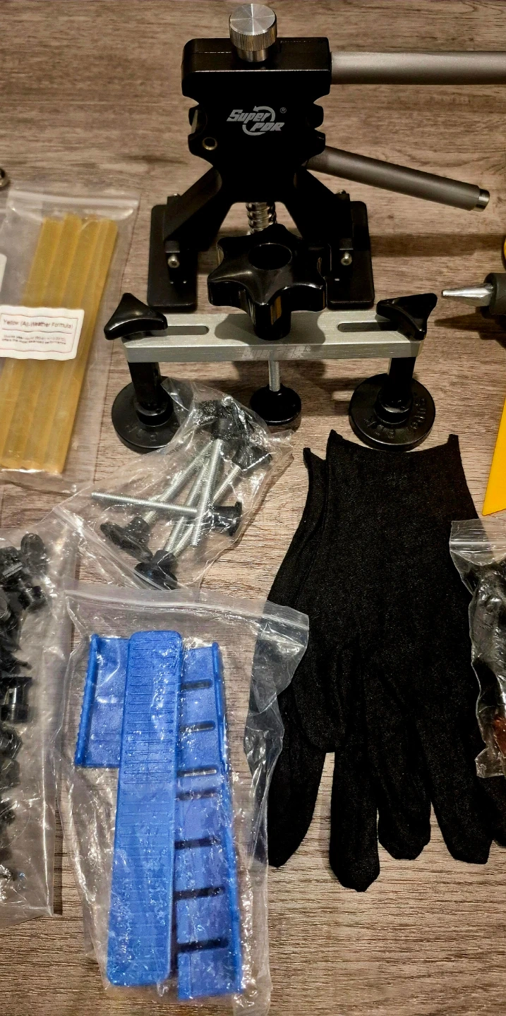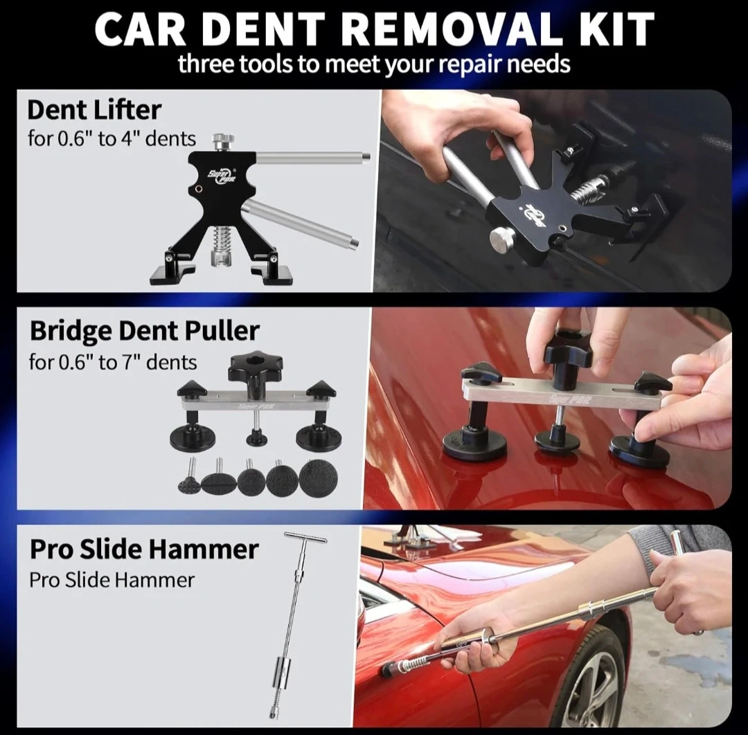 Dent Removal Kit for Cars, Dent Puller Kit with Dent Lifter, Bridge Puller, Slide Hammer for Repair Big Dent, Small Dent, Dings, Creases and Hail Damage. Good condition.