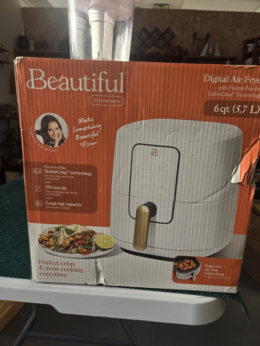 This Beautiful kitchenware digital air fryer boasts a 6qt capacity. It features Patent-Pending TurboCrisp technology for faster cooking. Enjoy crispy results with up to 75% less fat than traditional deep frying.