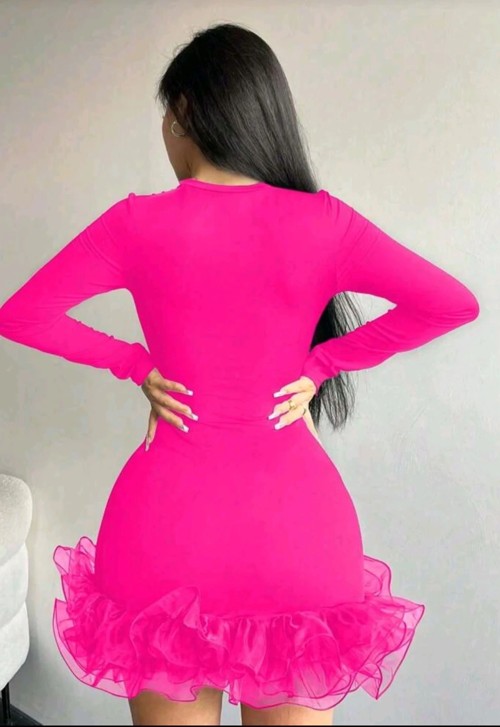 Hot Pink Long Sleeve Mini Dress with Ruffle Hem