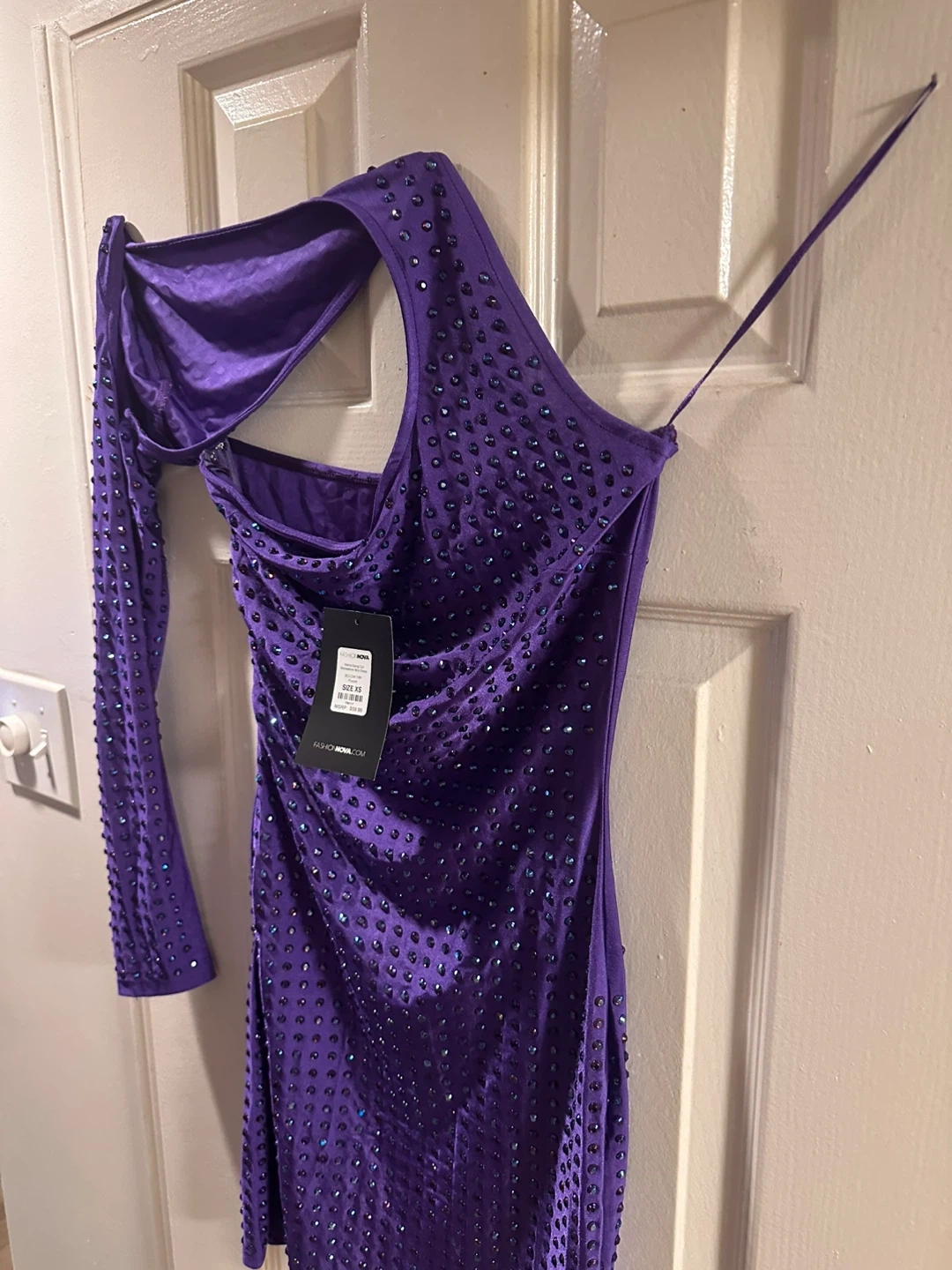 This is a brand new Fashion Nova dress, never worn! It's a beautiful purple colour with rhinestone detailing, perfect for a night out. The size is XS and it originally retailed for $59.99. USD