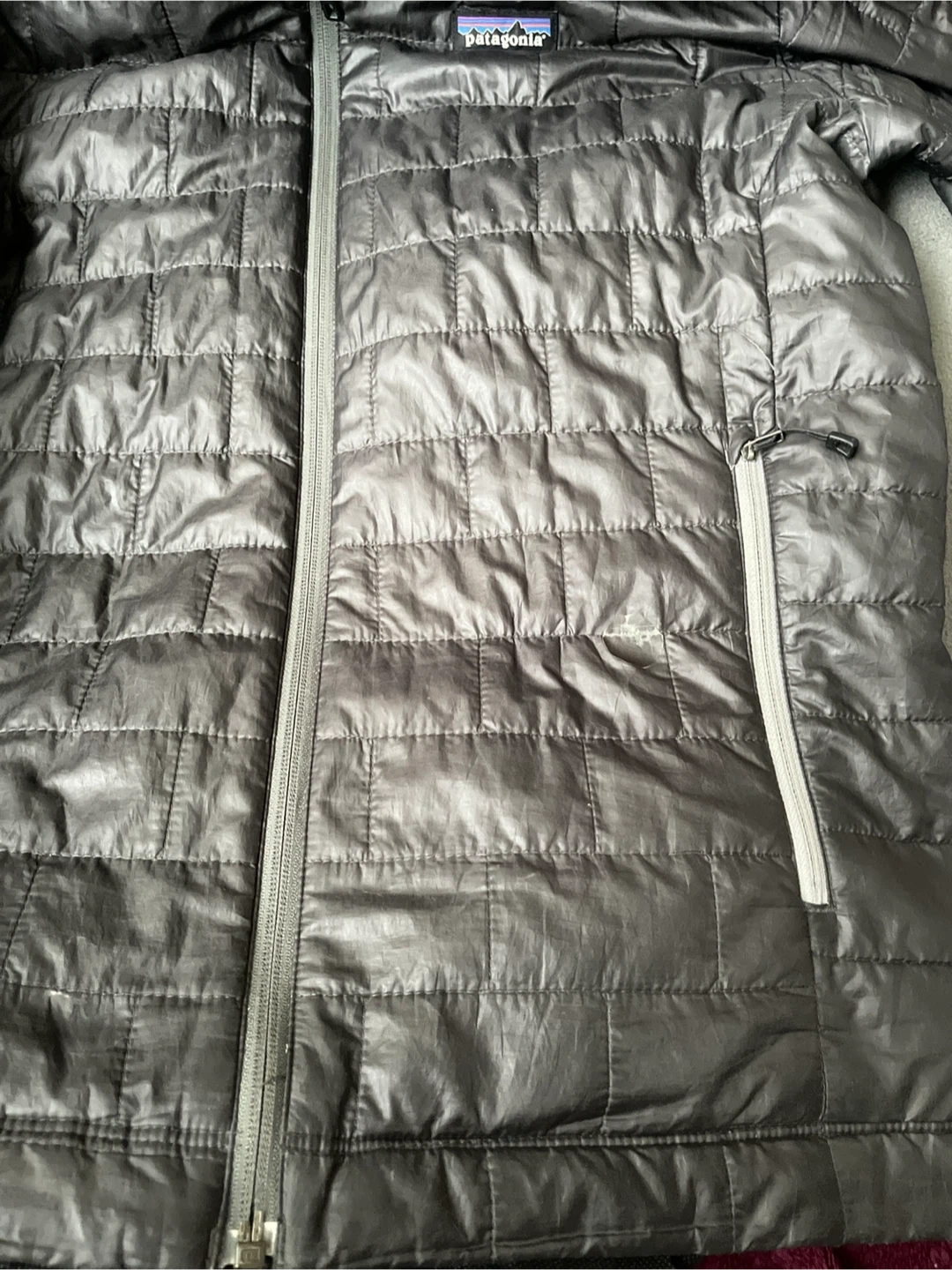 Selling a Patagonia Nano Puff hooded lightweight jacket in men's size medium. In the last two pictures, a small rip is not visible, but my son is trying to fix it and has covered it with a small piece of fabric tape. It doesn't appear too much and doesn't affect the jacket's function. It's in good condition and ready to keep you warm!
