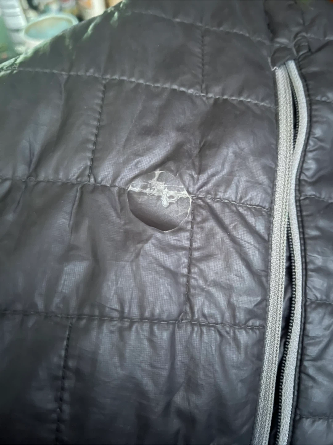 Selling a Patagonia Nano Puff hooded lightweight jacket in men's size medium. In the last two pictures, a small rip is not visible, but my son is trying to fix it and has covered it with a small piece of fabric tape. It doesn't appear too much and doesn't affect the jacket's function. It's in good condition and ready to keep you warm!