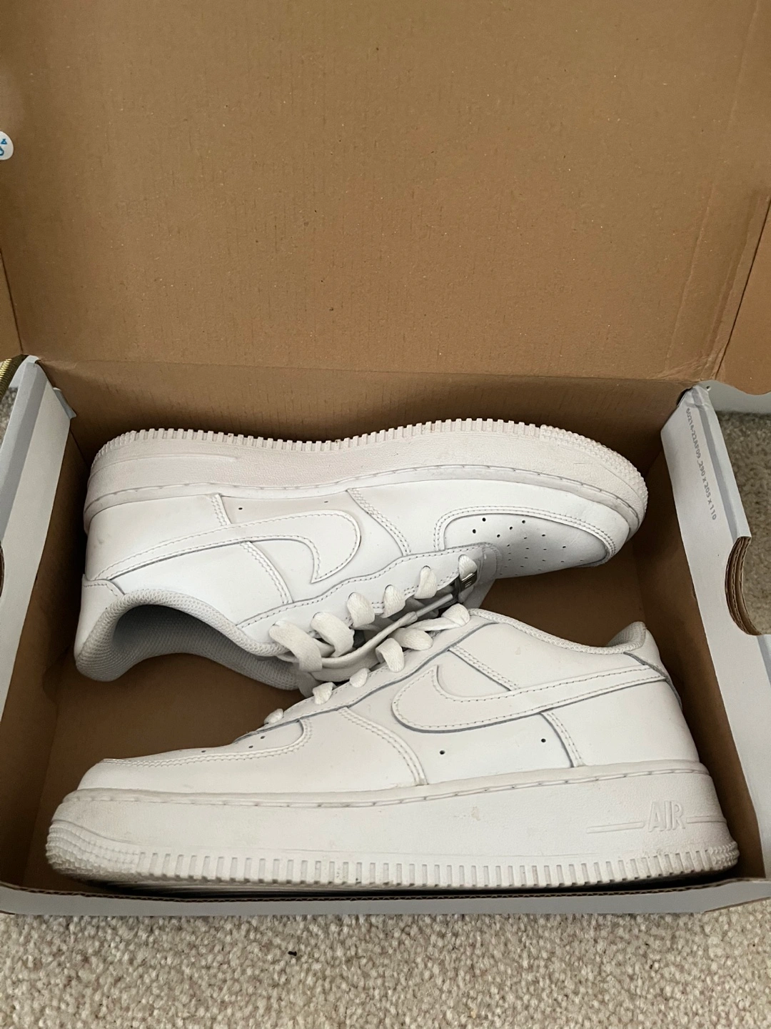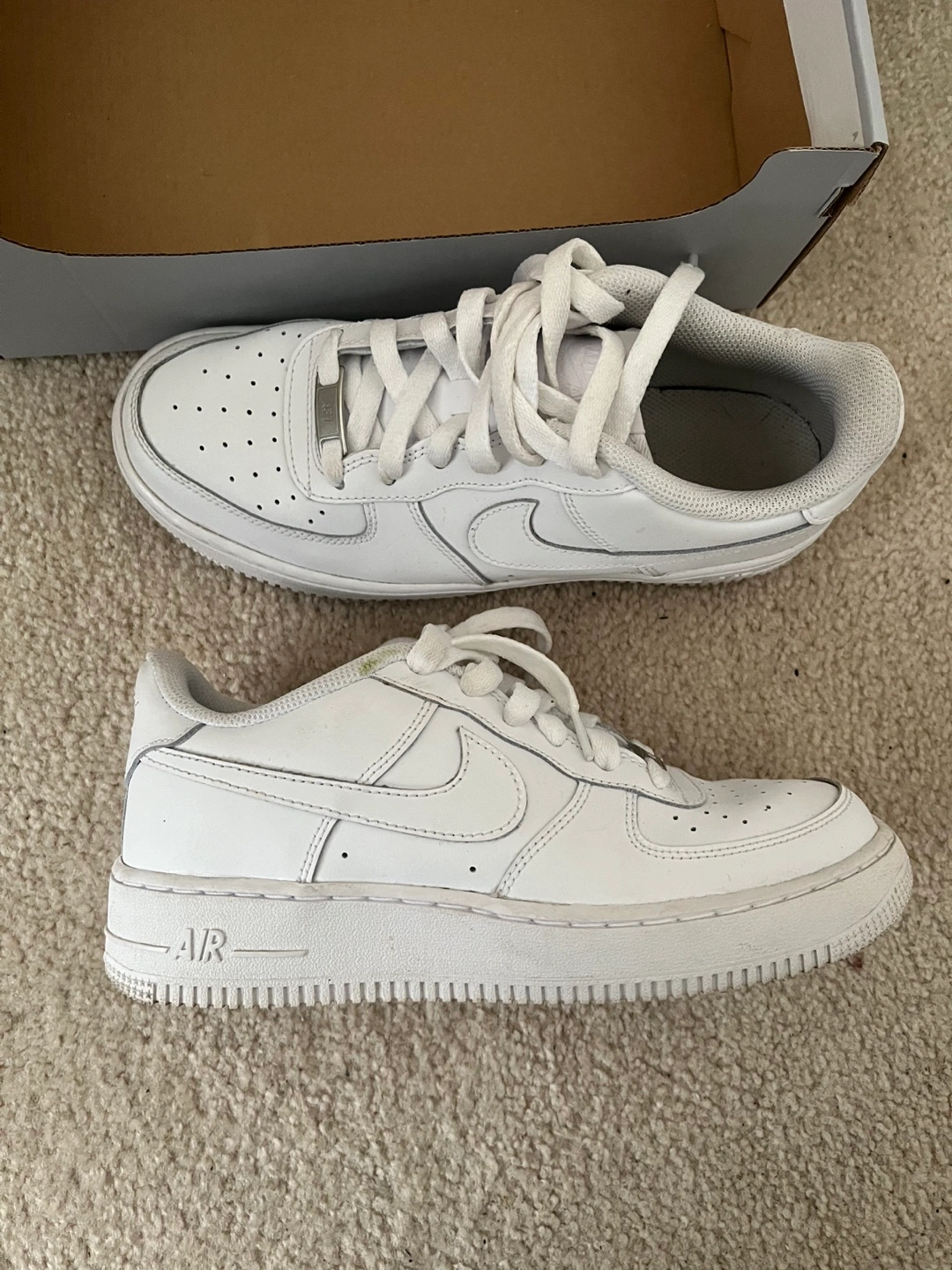 Classic white Nike Air Force 1s. Low-top sneakers. Great condition. Youth sizing.