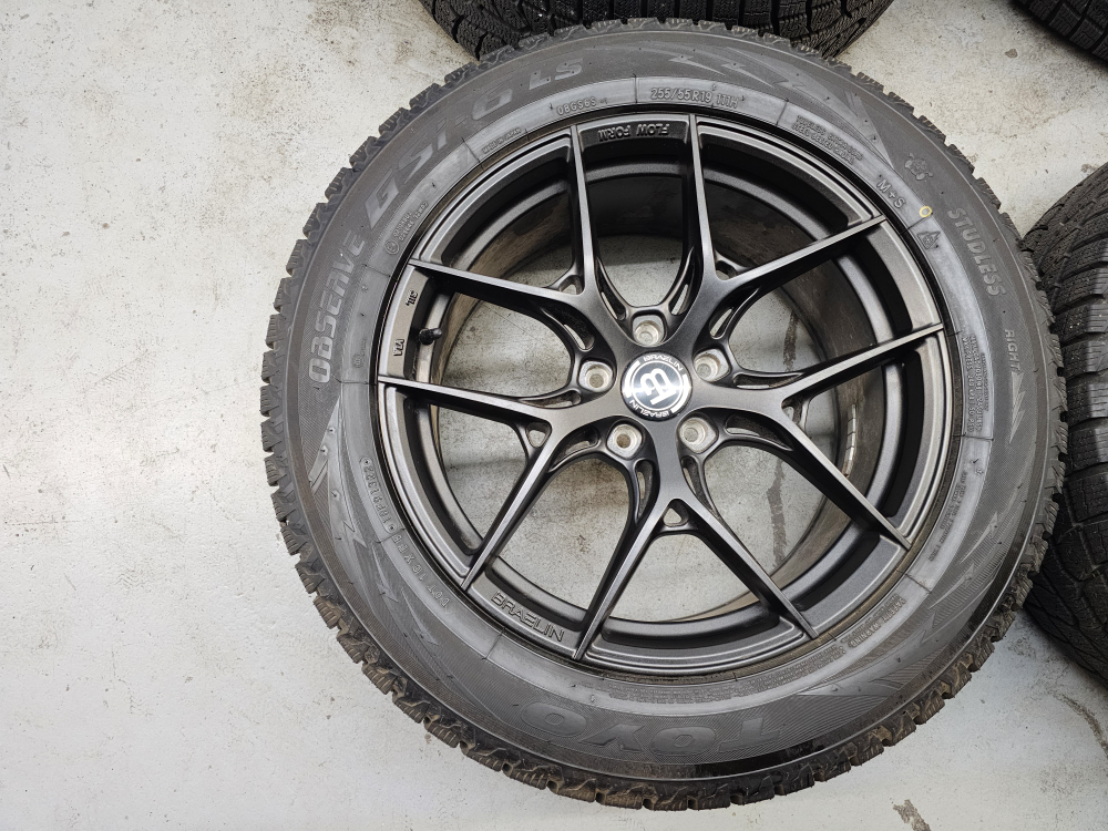 Set of 4 19" Braelin alloy rims with toyo observe winter tires on them 255/55/R19 used on Toyota highlander/Lexus rx350. Rims and tires are almost brand new. Tires have approximately 90% thread left on tires. TPMS INSTALLED