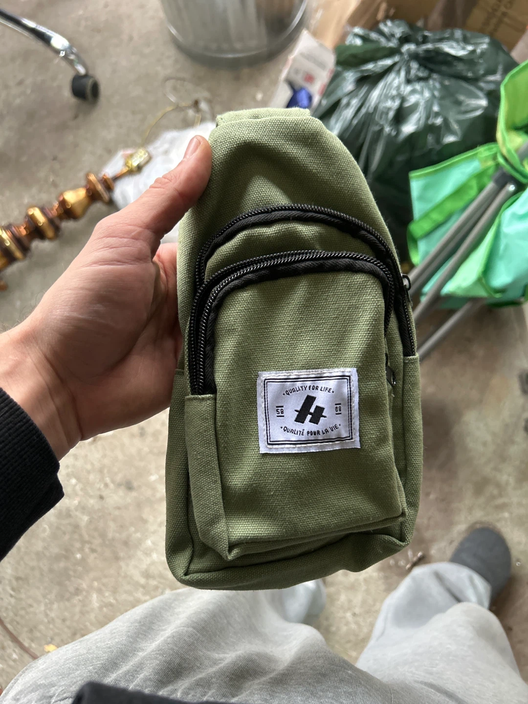 Selling a cute olive green sling bag! It's in great condition and perfect for carrying your essentials. The bag features a durable canvas material and adjustable strap for comfortable wear. It's a great everyday bag!