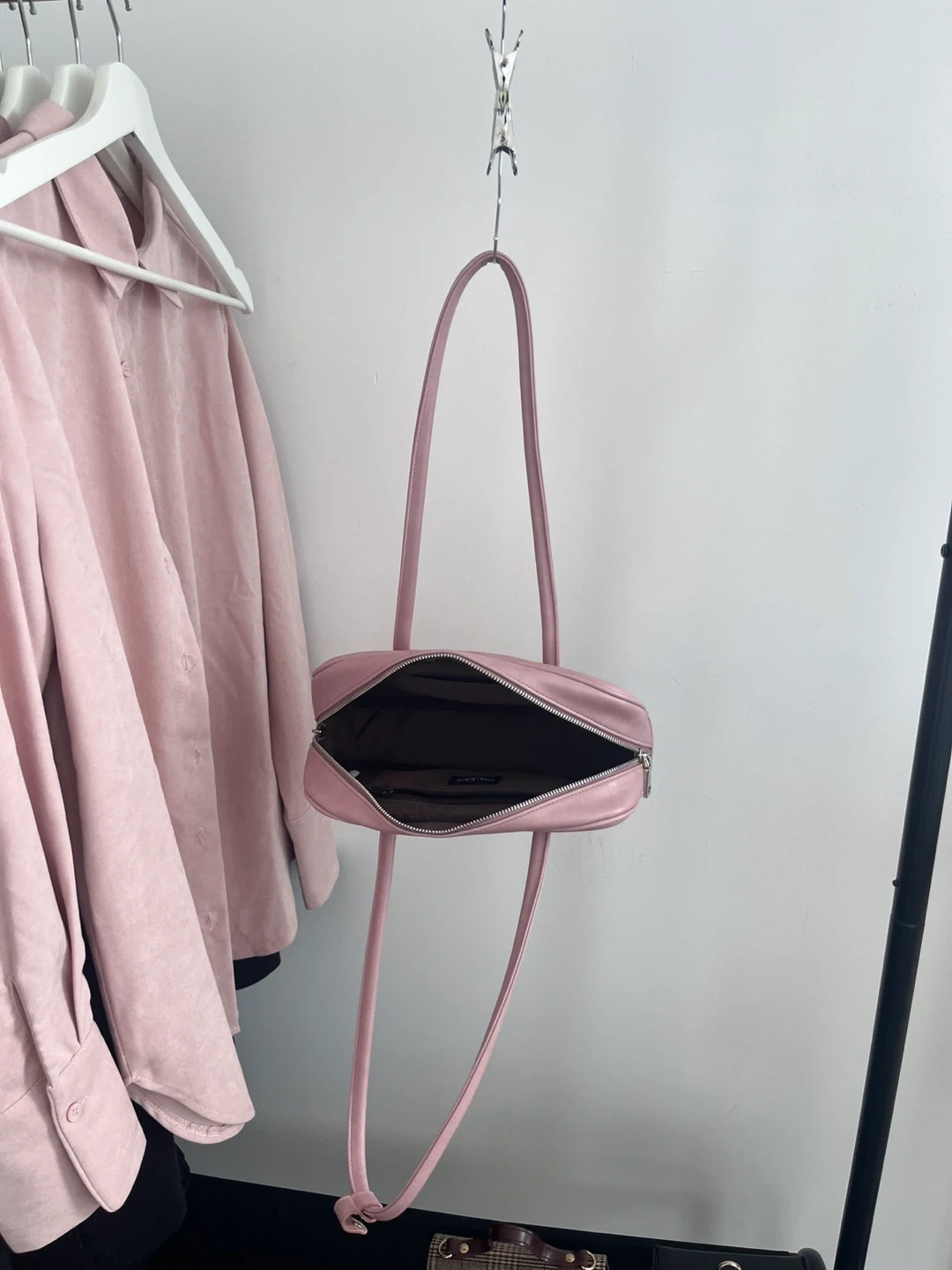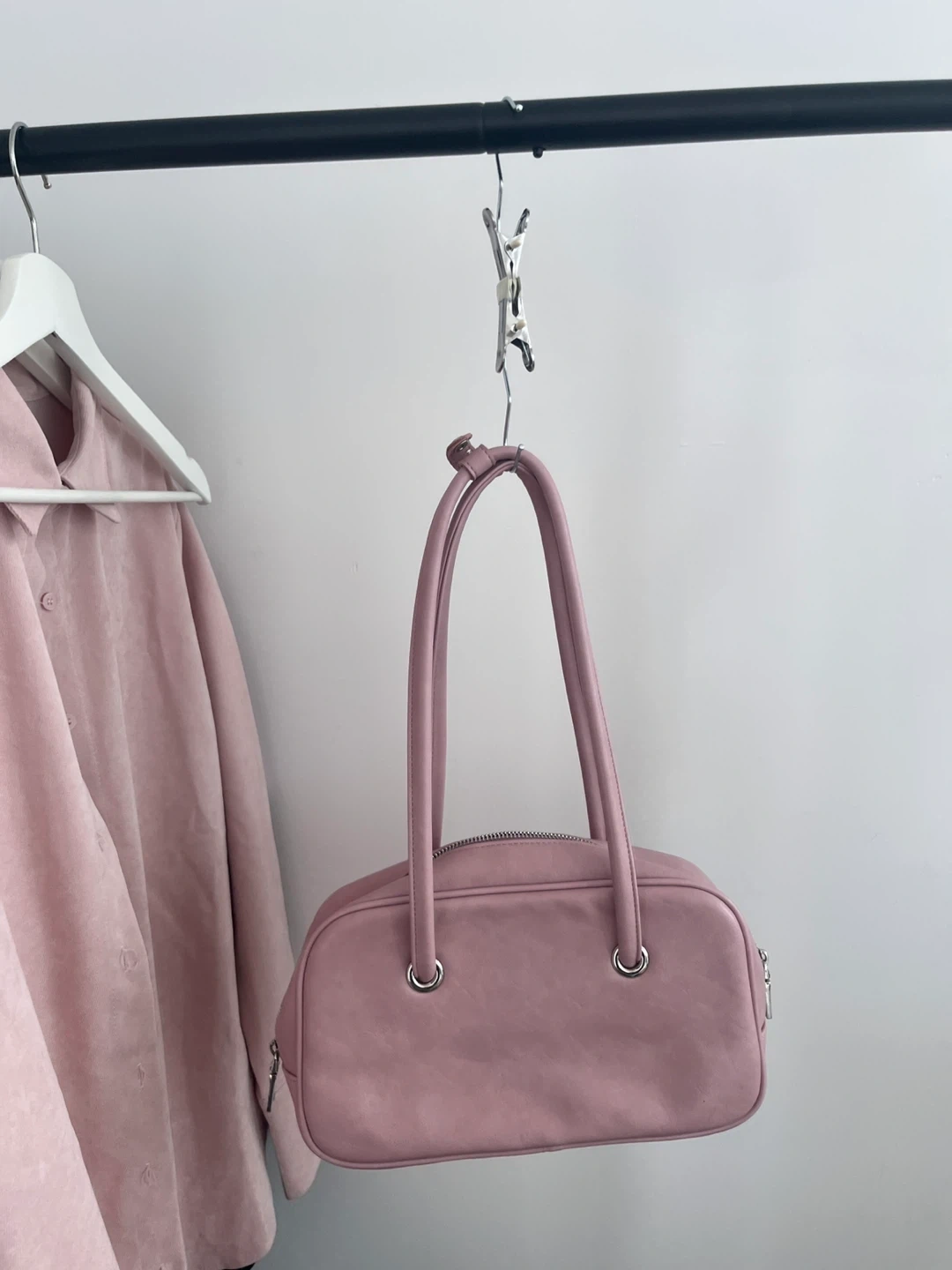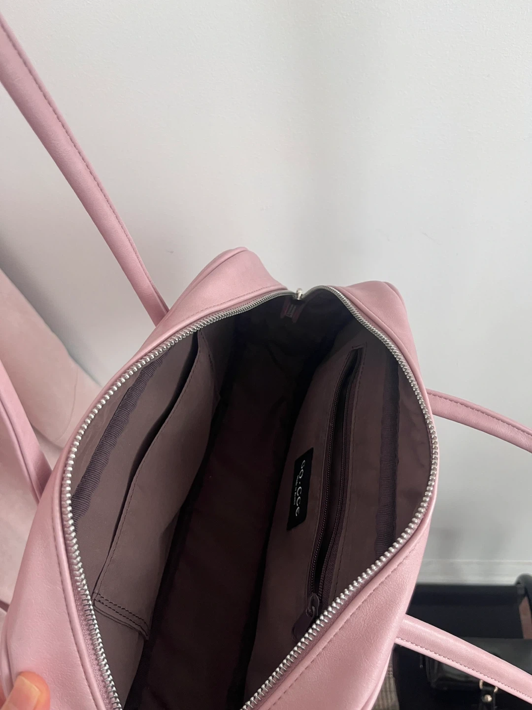This indy pink shoulder bag features a zip-top closure with multiple interior pockets. It's made from a faux leather material. This bag is great for everyday use. Made in South Korea. (Click other listings- Moving country sale - every clothes and handbags under $10)