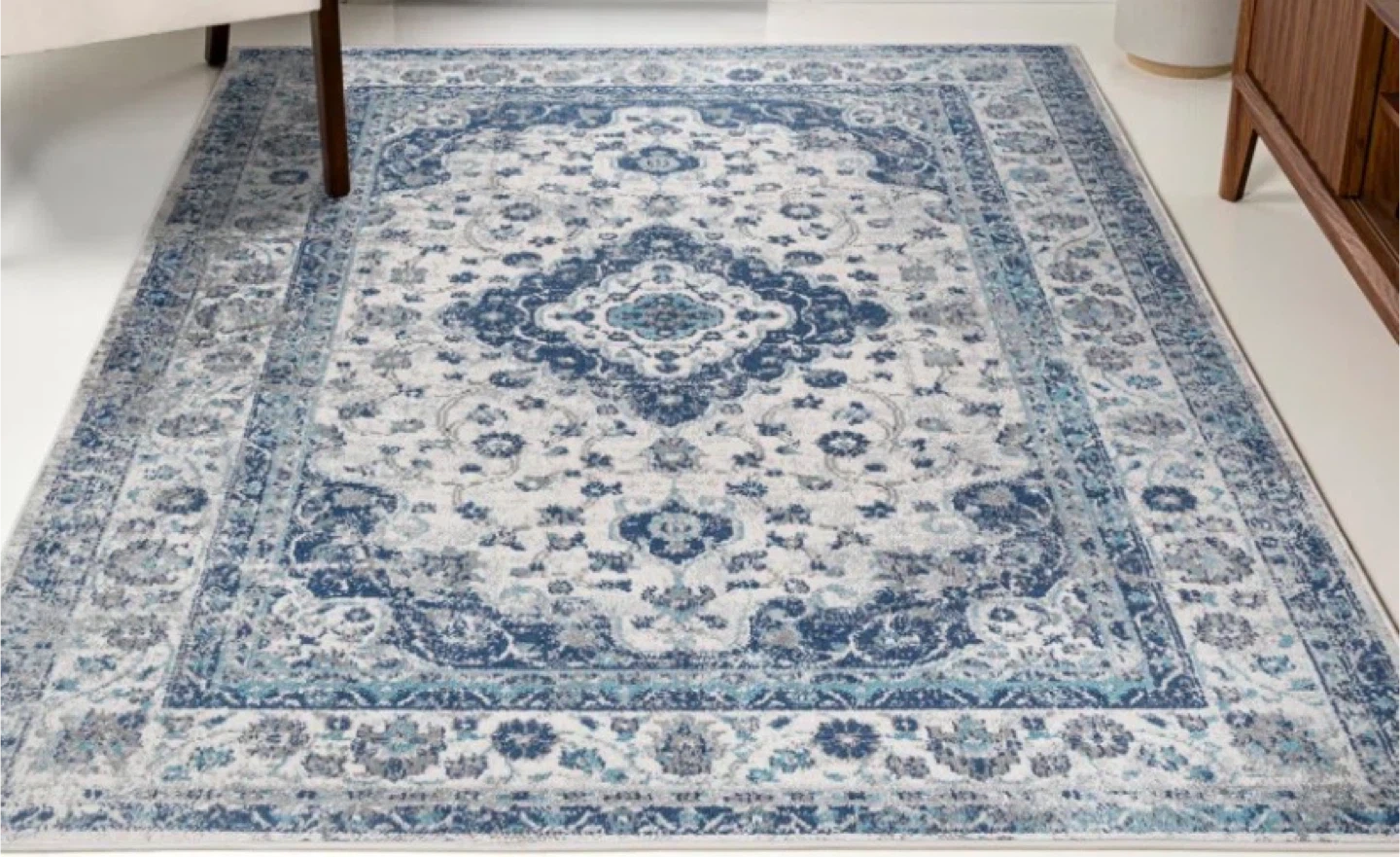 Blue and White Traditional Area Rug