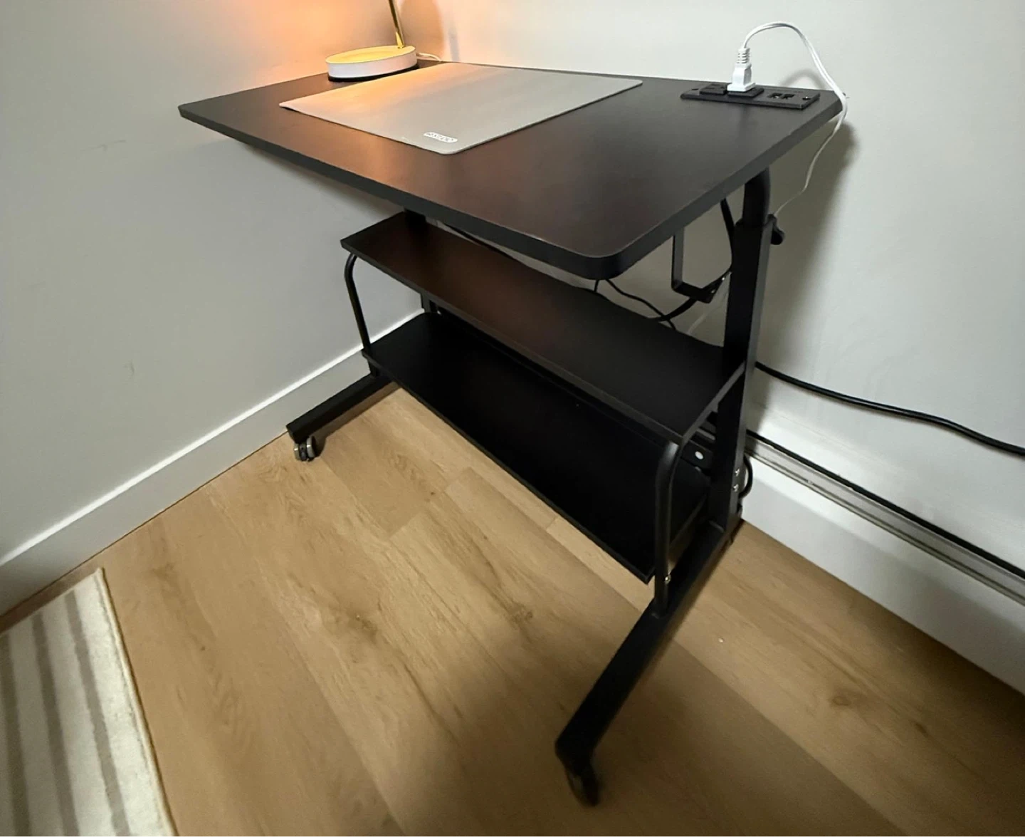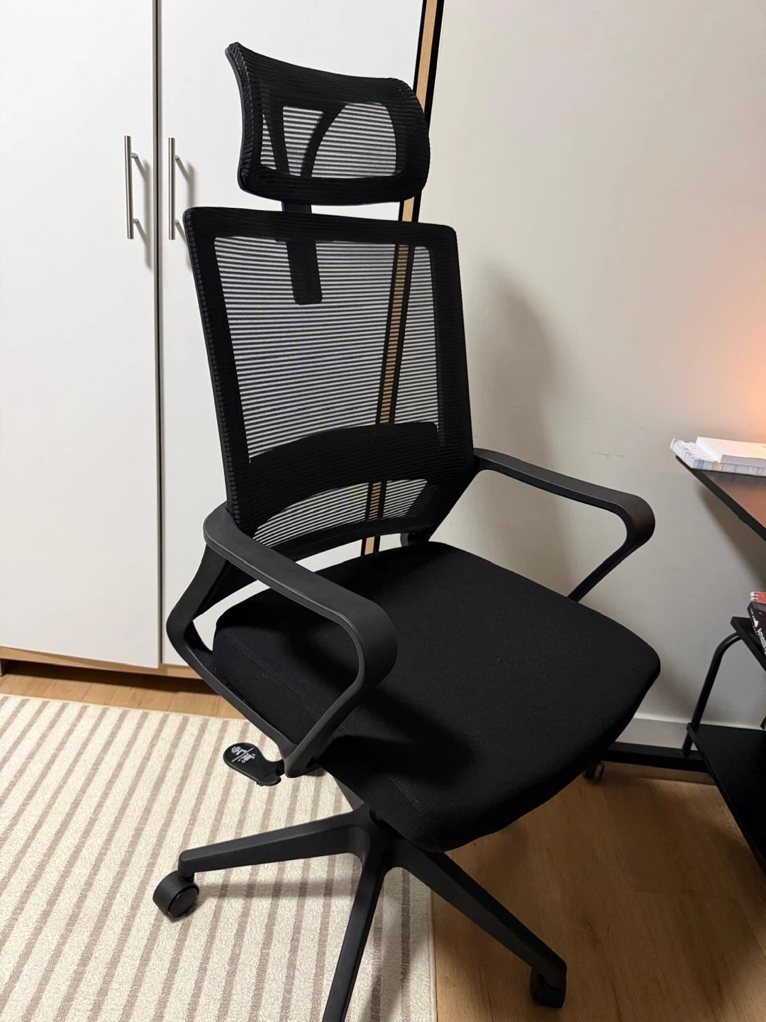 Black Mesh Office Chair with Headrest and table