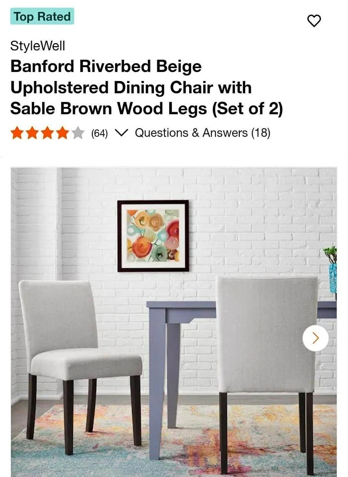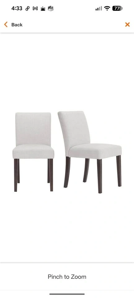 Brand new dining chairs, still sealed in original packaging. Easy setup and comfortable design. Set of 2. Original price: $450.