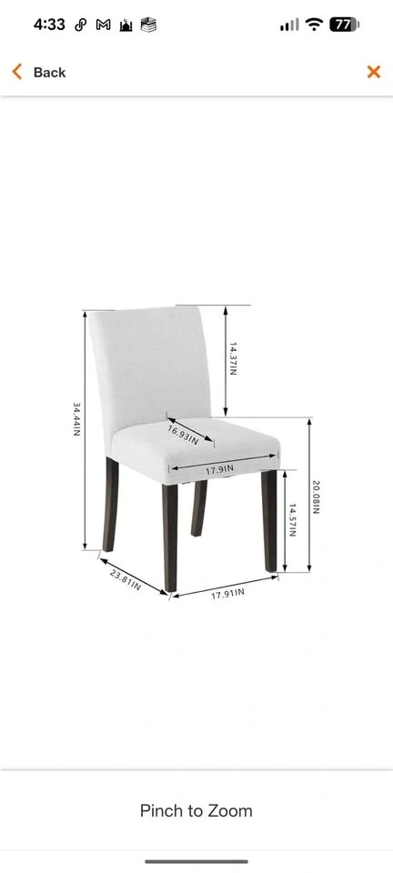 Brand new dining chairs, still sealed in original packaging. Easy setup and comfortable design. Set of 2. Original price: $450.