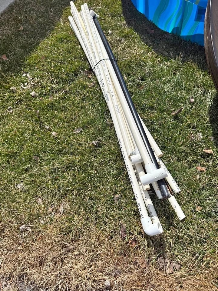 Assorted PVC piping and fittings available for free. Includes various lengths of white and black piping (mostly 1/2" / 12mm) along with several elbow and T-fittings. Used/Scrap, but perfect for garden trellises, DIY projects, irrigation, or home repairs.