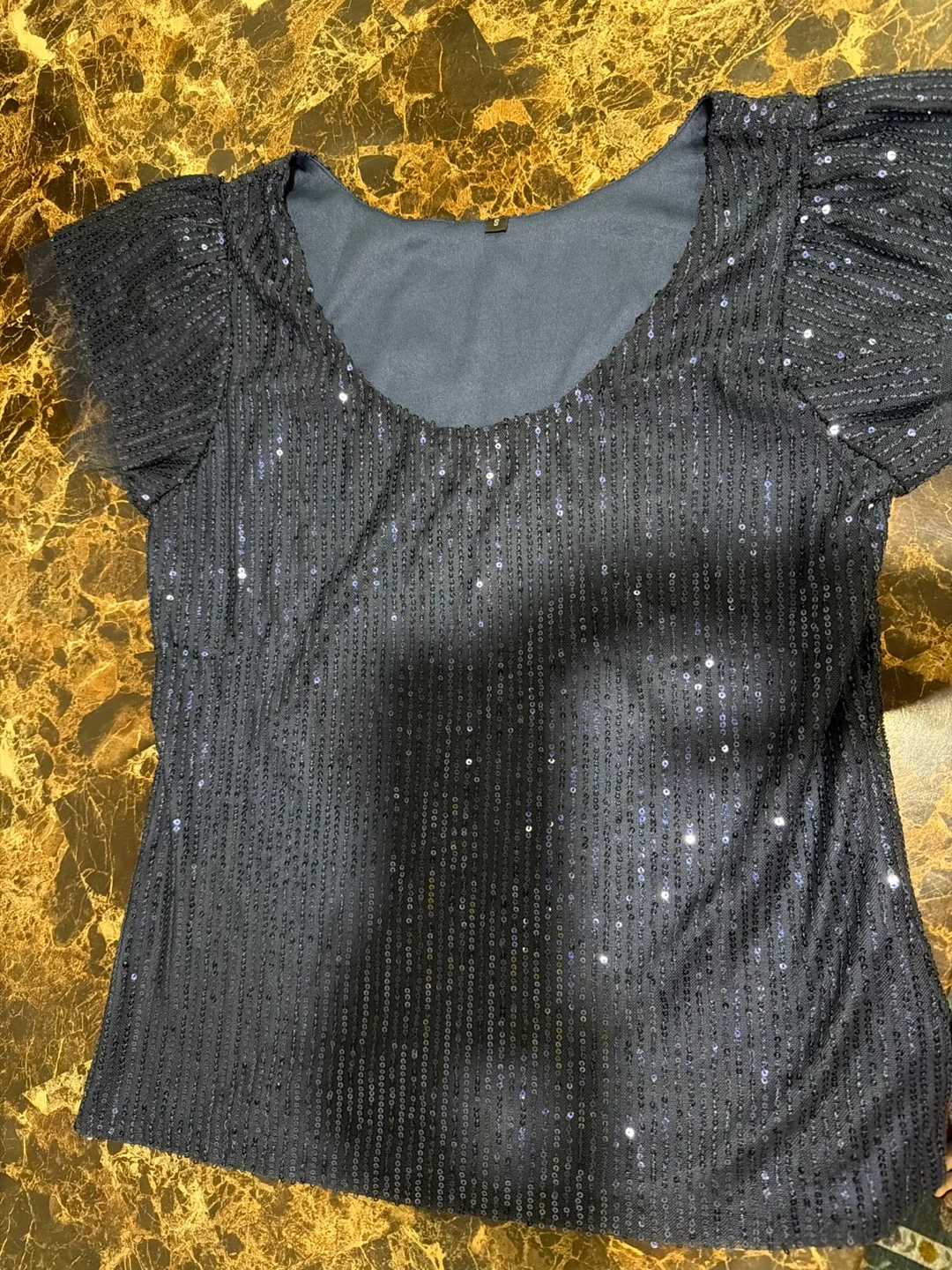 Selling a cute black sequin top in size small! It's new and would be perfect for a night out or a special occasion. The sequins add a touch of sparkle and the fit is flattering