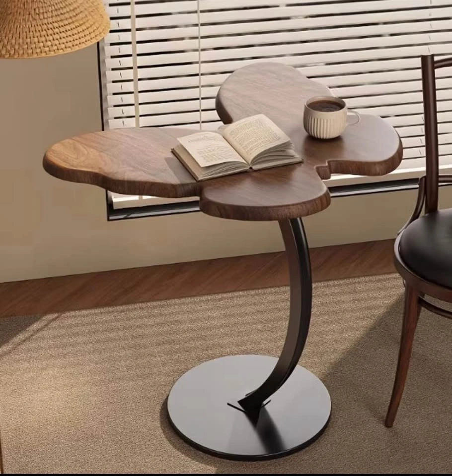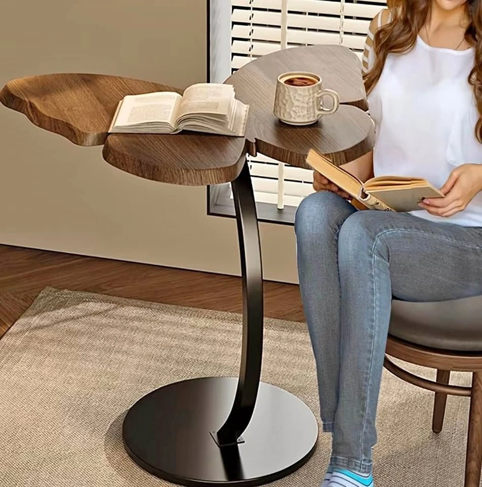 This butterfly-shaped solid wood edge table in walnut color would be a lovely addition to any room. It's portable and easy to assemble, making it convenient to use. Ideal for retro decoration enthusiasts, it can be used in various spaces like living rooms, bedrooms, offices, or even as a TV cabinet tray.