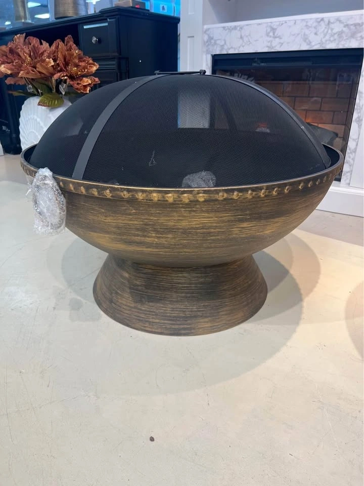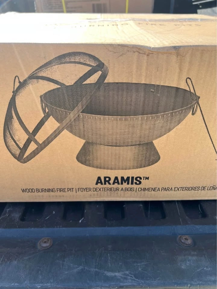 This Aramis wood fire pit is a nicely sized outdoor fireplace for gatherings. It has a timeless design, perfect for sharing memories with friends and family. The steel mesh screen helps keep popping embers at bay while you enjoy the crackling wood fire. The handled screen cover makes it easy to enjoy the fire and block embers, so you can comfortably sit around the fire bowl. It's a classic way to add heat and light to your outdoor space.