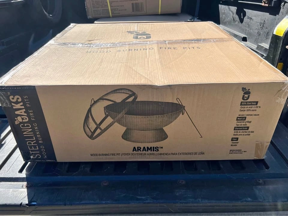 This Aramis wood fire pit is a nicely sized outdoor fireplace for gatherings. It has a timeless design, perfect for sharing memories with friends and family. The steel mesh screen helps keep popping embers at bay while you enjoy the crackling wood fire. The handled screen cover makes it easy to enjoy the fire and block embers, so you can comfortably sit around the fire bowl. It's a classic way to add heat and light to your outdoor space.
